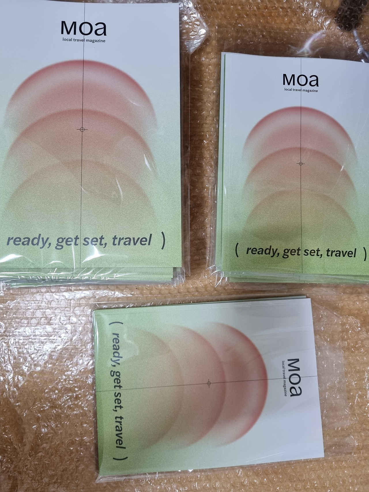 디자인부터 택배 발송까지 약 2개월 정도가 걸린 것 같다. 시간 대비 수익은 정말 남는 것이 없었지만 내가 직접 쓴 글을 사주는 사람이 있다는 것이 너무 감사한 경험이었다. 또한, 이 과정 속에서 금액 책정, 좋은 인쇄소, 포장재 비용 투자 등 좋은 것들을 많이 알 수 있었던 경험이었다. 여행매거진 <moa>의 행보는 여기서 끝이 아니고 이제 시작이니 계속해서 많은 관심을 가져주면 너무 감사드리겠다-!