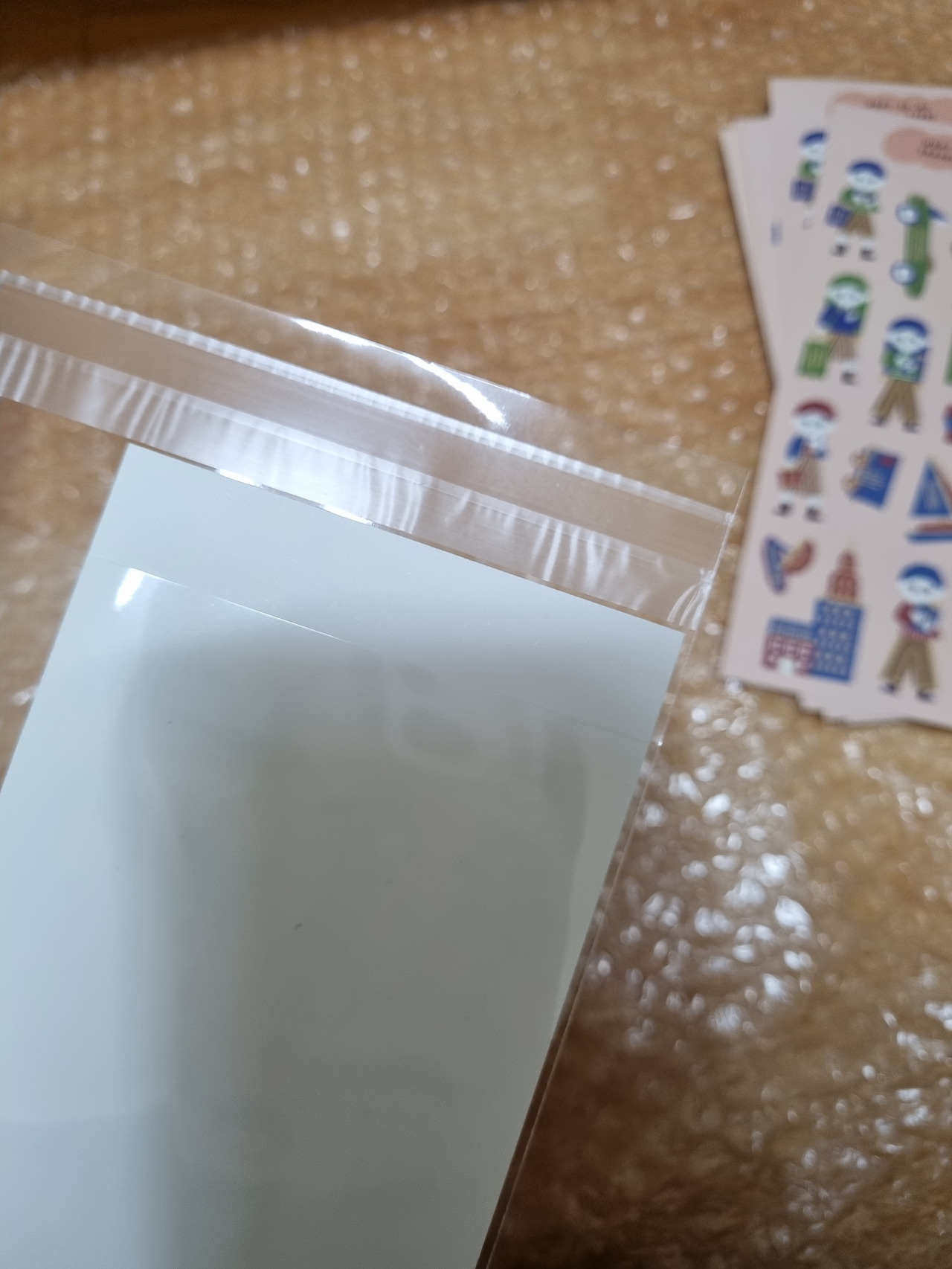 인쇄 내용물을 확인을 하며 포장지를 종류별대로 펼쳐보았다. 차곡차곡 책자 비닐포장을 끝내고, 엽서 포장도 끝내고, 이제 스티커 포장을 할 준비를 함 하부자~