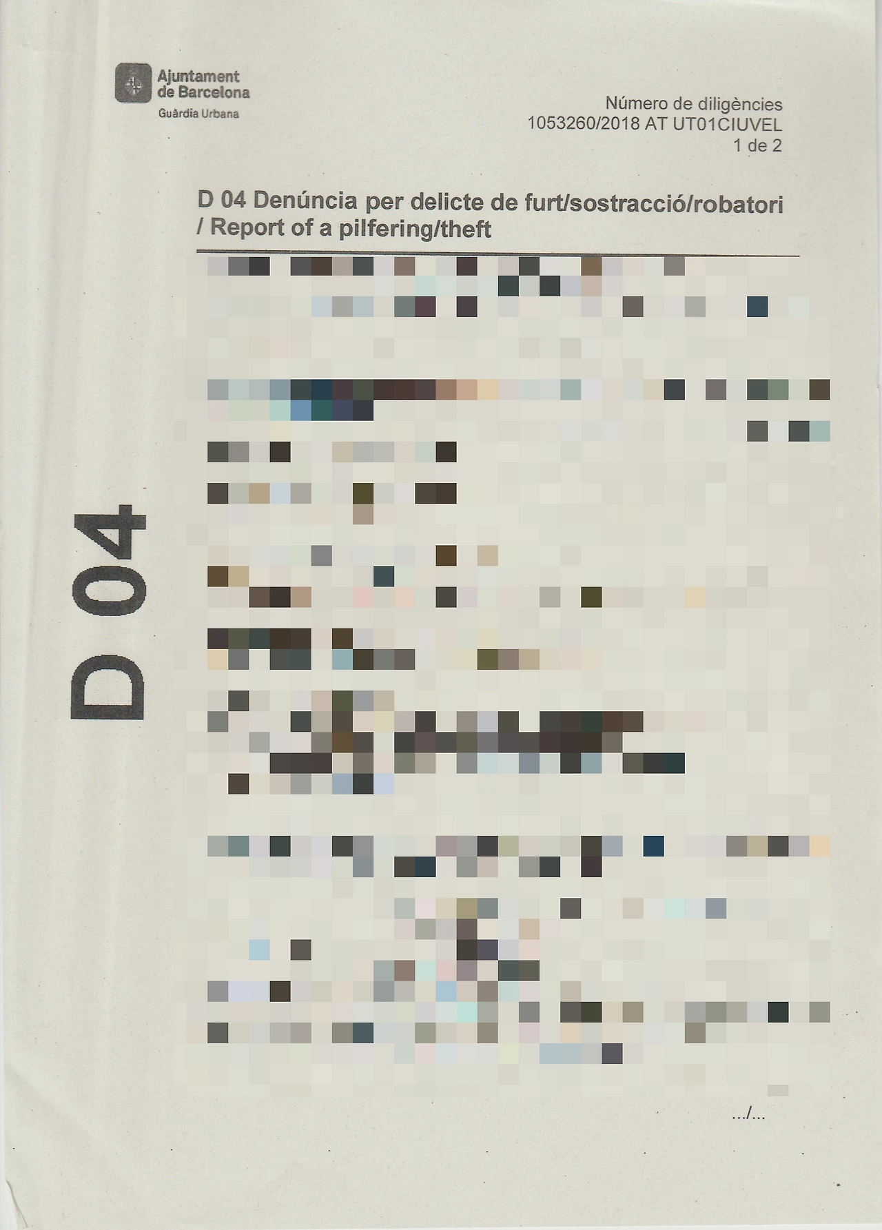 스페인어로는 대화가 안되었기에 경찰은 종이에 영어로 적으며 질문을 하고 나는 그에 맞는 대답을 하였다. 정확히 몇 시에 어느 구간에서 소매치기를 당했는지는 정신이 없어 확인을 미쳐 못했기에 생각하는데만 꽤 오랜 시간이 걸렸다. 심지어 영어의 모든 단어를 대문자로 적어주셔서 당황스러움을 한층 더 해주었다.