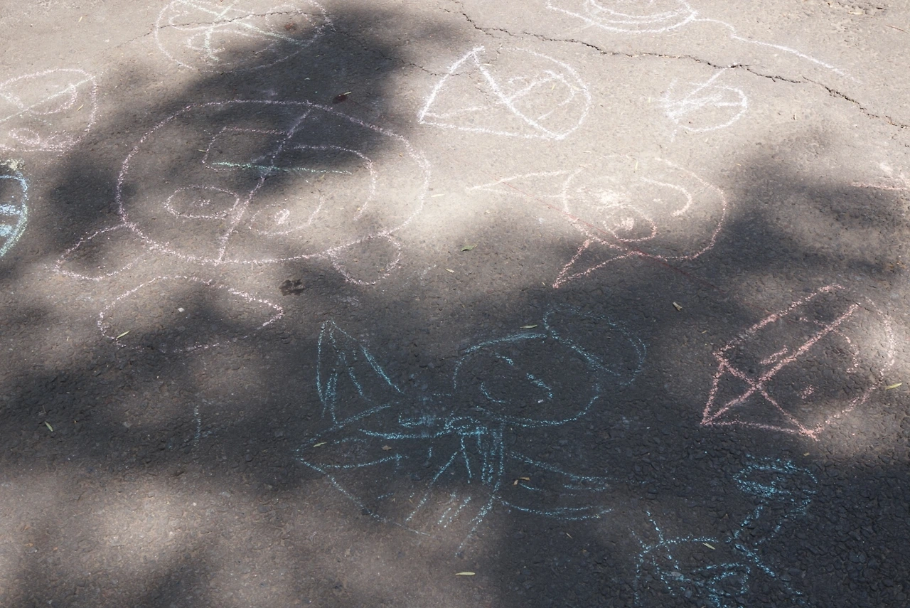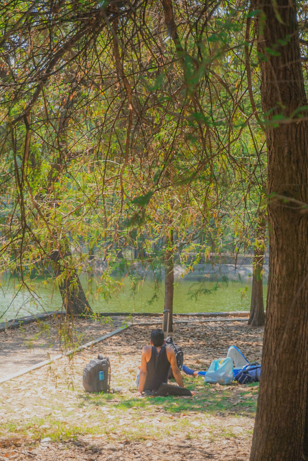 그렇게 날뛰다 바로 옆에 한적한 풀숲으로 들어섰다. 하늘을 가리는 우거진 풀숲 아래는 그림자와 함께 시원한 바람이 지나가고 있었다. 방금 전에 거닐던 곳과 전혀 반대되는 차분함이었다. 아이들은 바닥에 분필과 돌로 낙서를 하고, 대학생들은 가방을 내려놓고 책을 읽고 있었다. 아이가 있는 가족들은 물가 앞에 앉아 간식을 들고 물 건너편에서 축제를 벌이고 있는 이들의 노래와 환호소리를 배경음악으로 삼듯이 감상하고 있었다. 갑작스러운 평화로움에 이끌려 나도 뒤따라 앉아버렸다.
