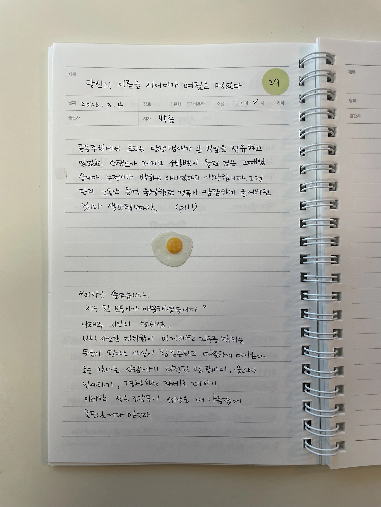 - 박준, 『당신의 이름을 지어다가 며칠은 먹었다』,