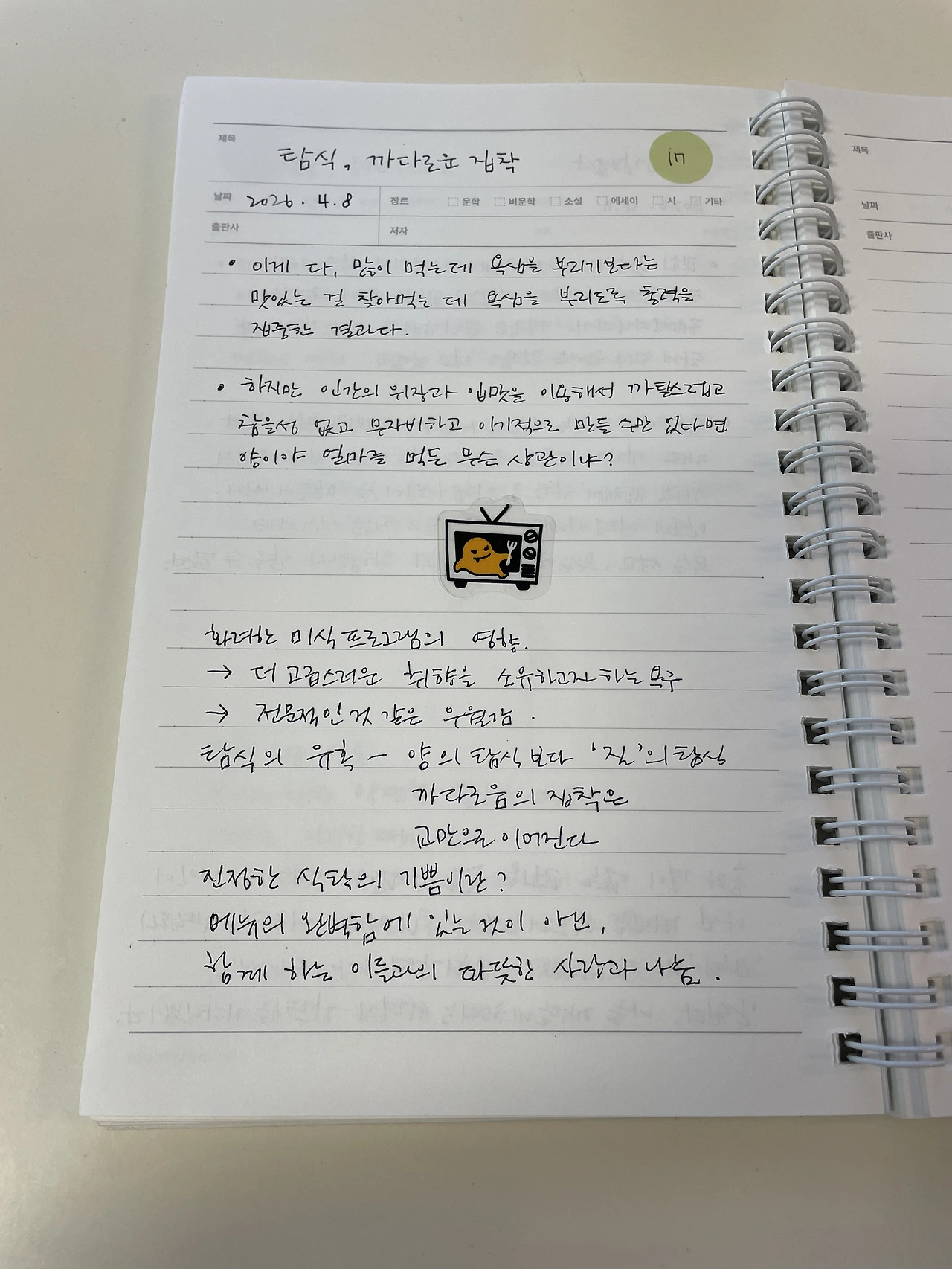 오늘의 필사를 통해 탐식에 대하여 생각해 본다.