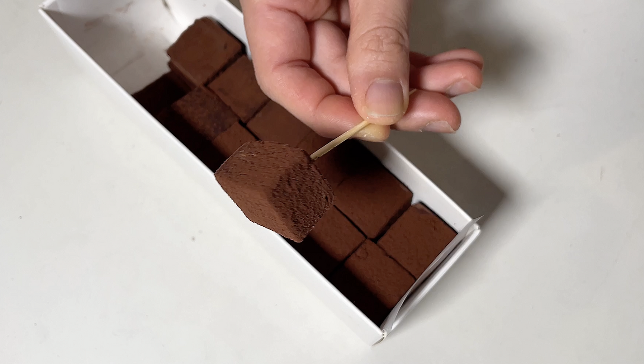 이전에는 호지차 생 초콜릿을 만들었었는데 쌉싸름하면서도 고소한 맛이 아주 매력적이었고, 최근에는 쑥, 유자, 망고, 밤, 꿀 생초콜릿을 만들었었다.
