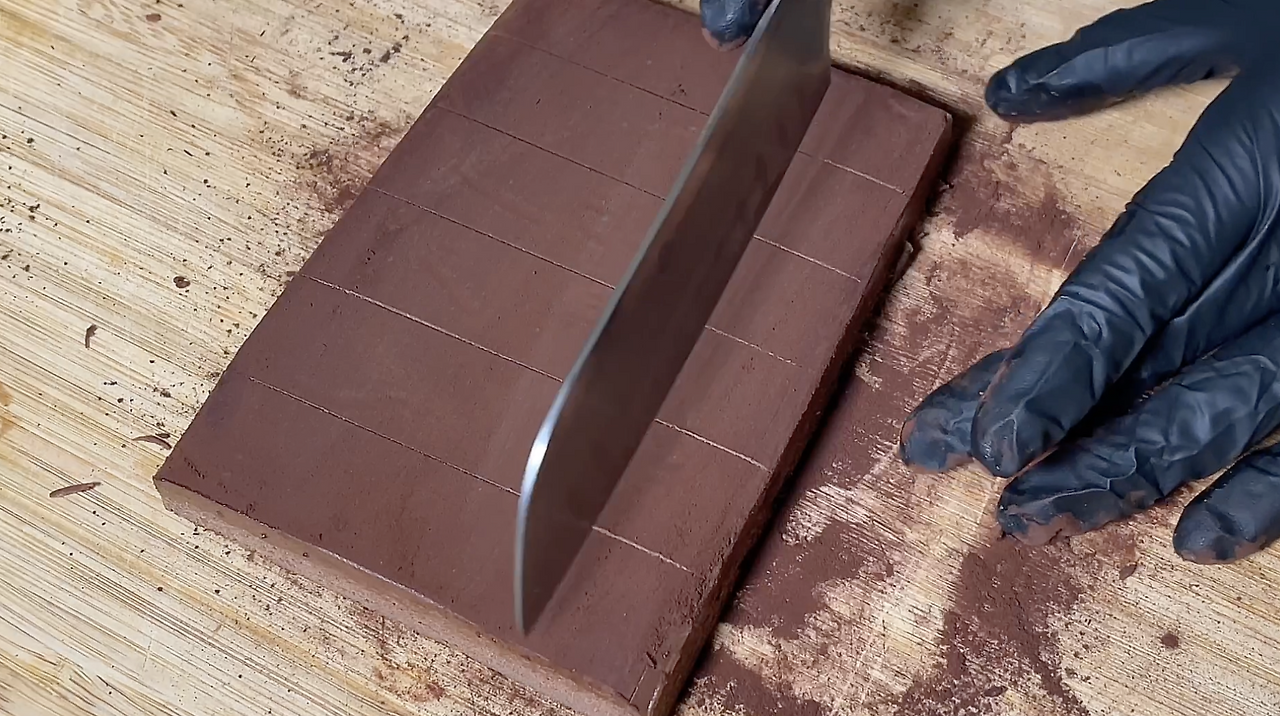 사각틀이 있으면 사각틀에 가나슈를 부어서 굳혀도 좋고, 없다면 사각형의 어떤 틀이든 넣어서 굳혀도 괜찮다.