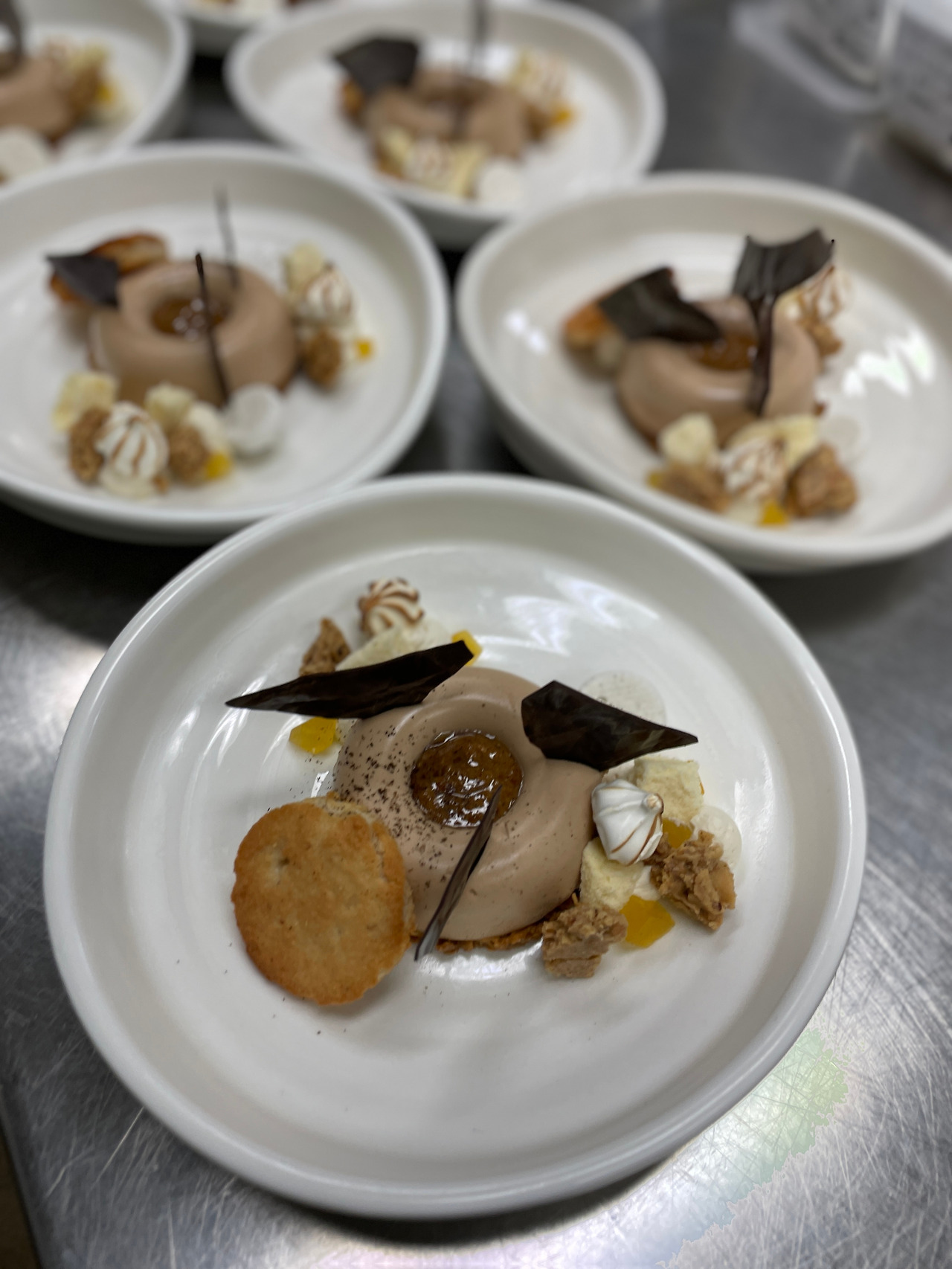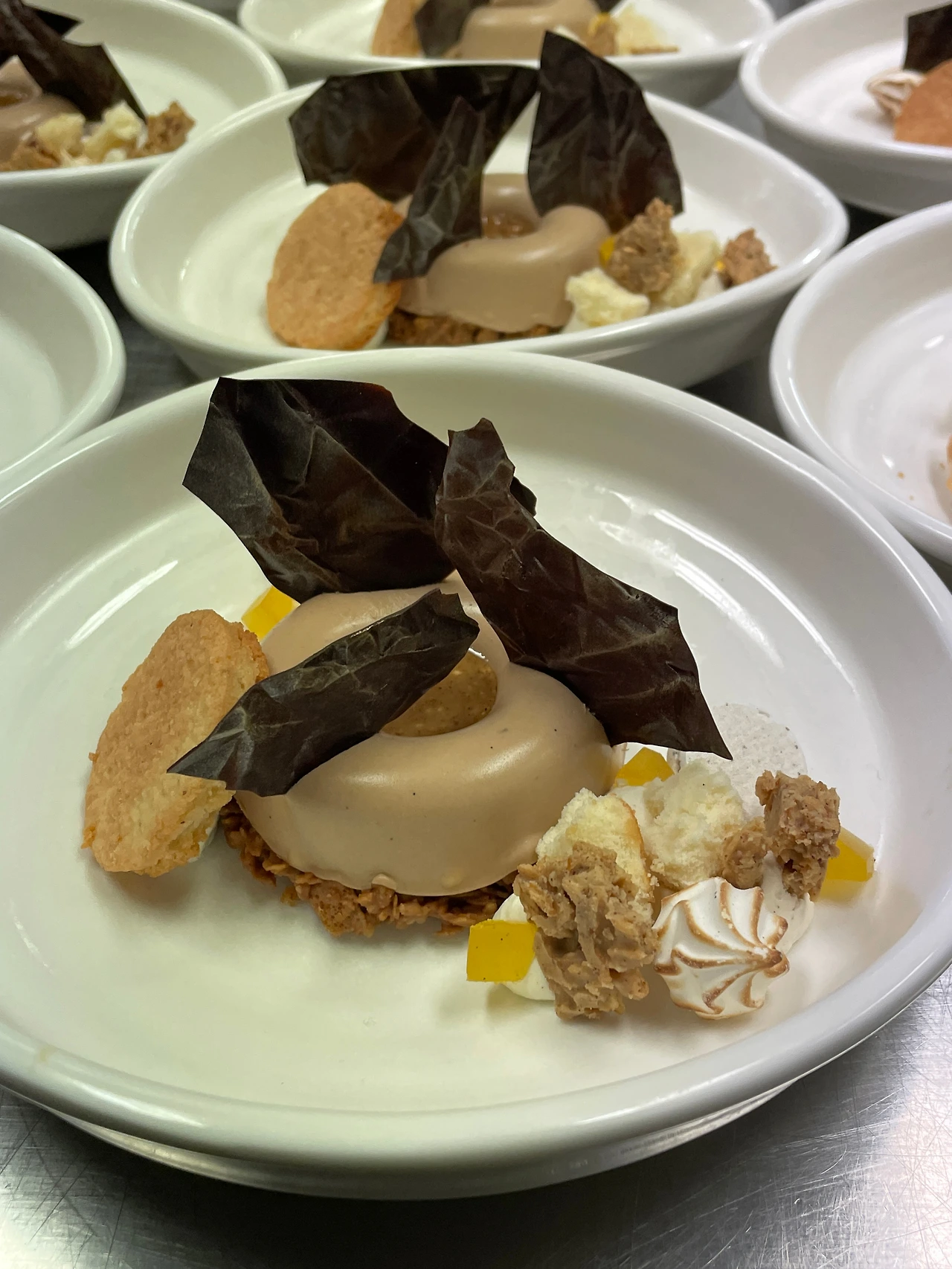 Ebene으로 만든 위의 초콜릿 가니쉬는 아래 사진의 디저트에 활용하였다.