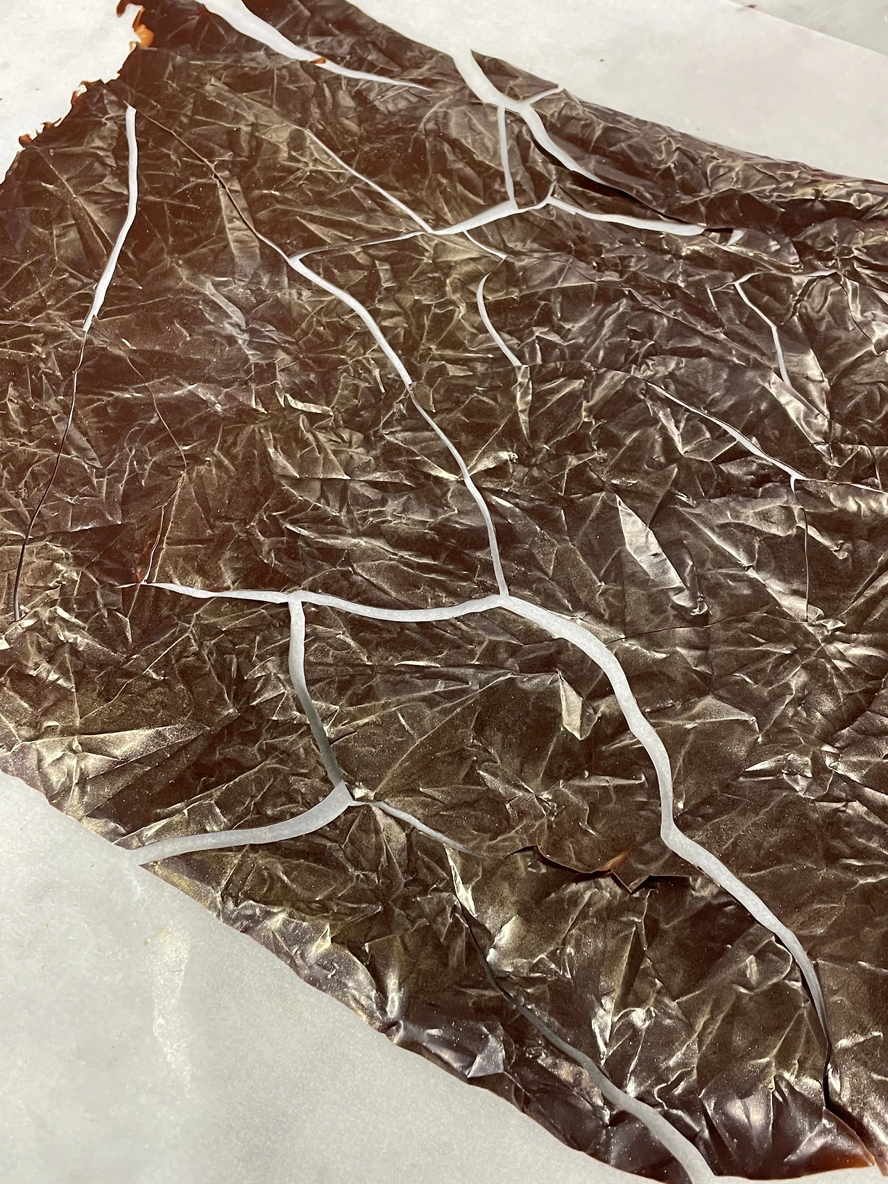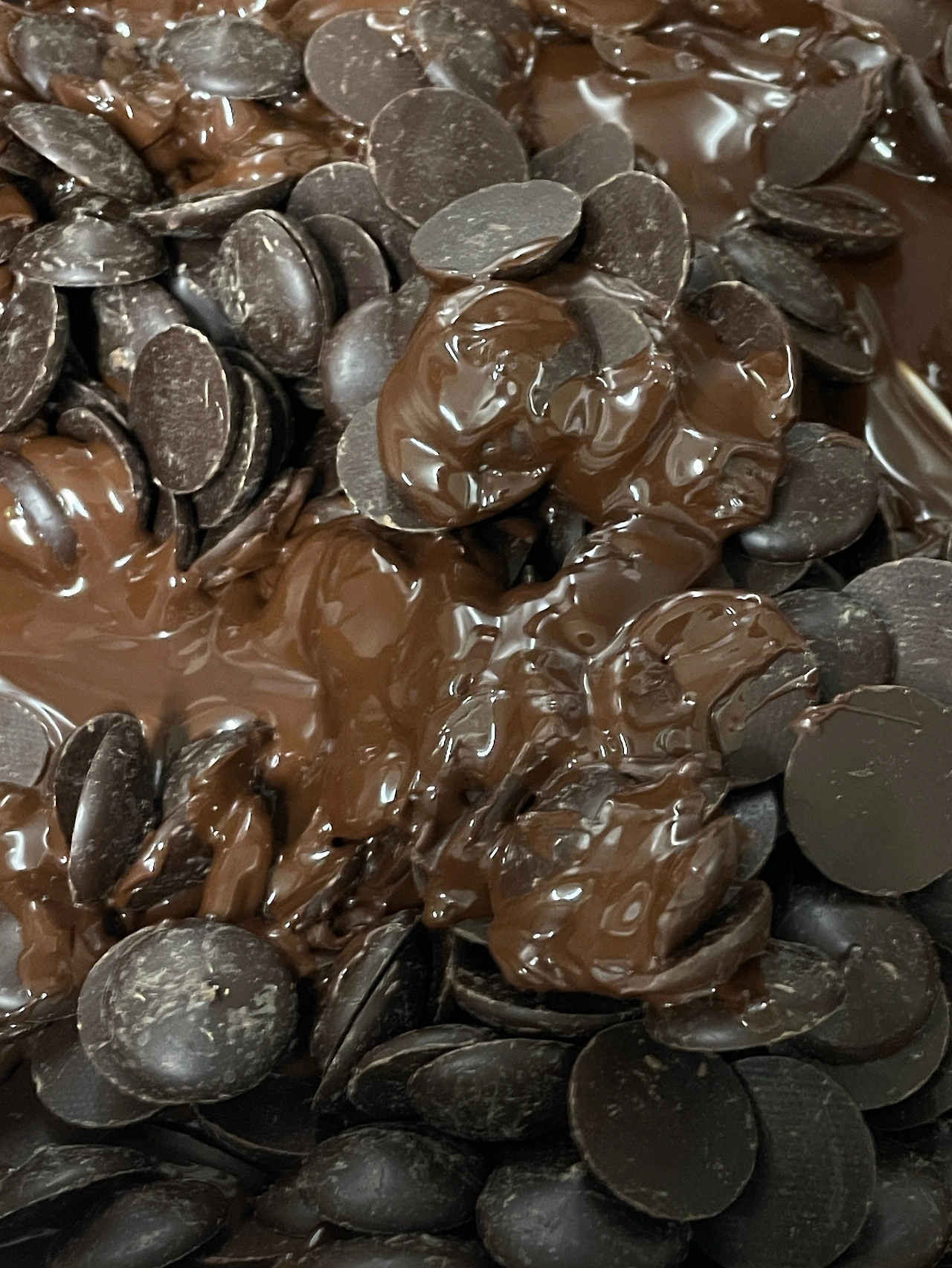 카카오 버터 함량과 더불어 레시틴이 들어있지 않아 유동성이 낮은 것에 영향을 끼치는 것 같다.