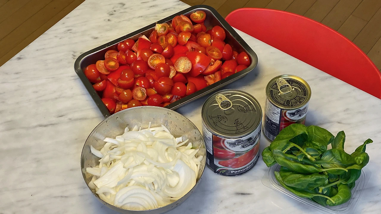 여러 레시피를 참고하여 조금씩 변형하며 몇 번 만들어 보았는데, 가장 최근에 나의 랜선 선생님 '김밀란'님의 강좌를 따라 소스를 만들어 보곤 만세를 외쳐버렸다. 유료 강좌라서 구체적으로 적기는 죄스러우나, 가장 중요한 포인트는 3 종류 - 완숙 토마토, 방울토마토, 토마토 통조림을 모두 넣어 끓여서 각각의 장점을 뽑아내는 것에 있는 듯하다. 각 토마토의 장점이 한겹씩 더해져서 맛의 깊이를 만들어낸다. 마치 비법서를 발견한 무협지 주인공 같다. '토마토를 섞거라' 가르침 한 마디에, 내 스킬이 한 갑자 늘어난 기분.