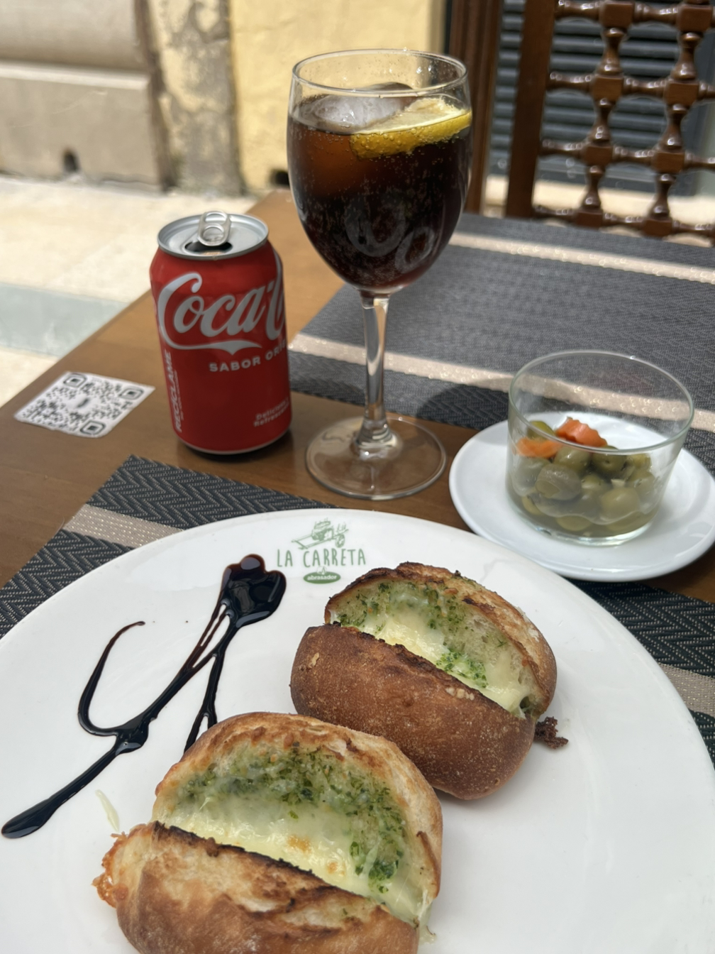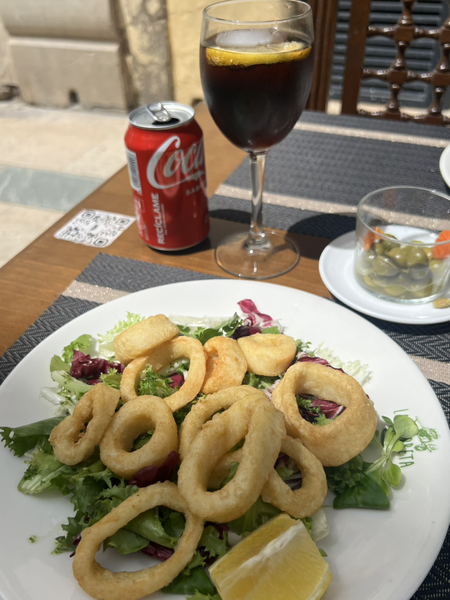 어쨌거나 메뉴판을 살펴본 뒤 오징어튀김과 콜라를 주문하자 주인아저씨가 "¿Quiere pan con ajo?(마늘빵도 줄까?)"하고 물어보셨다. 잠시 고민하다 마늘빵도 함께 주문했고, 얼마 지나지 않아 마늘빵이 먼저 나왔다. 그런데 이게 웬 걸, 별 기대 없이 한 입 베어문 마늘빵은 충격적으로 맛있었다. 이어서 나온 오징어튀김도 지금까지 먹어본 오징어튀김 중 최고였고. 후기를 보지 않고 들어온 식당이 이렇게 성공적이라니 금세 기분이 좋아졌다.
