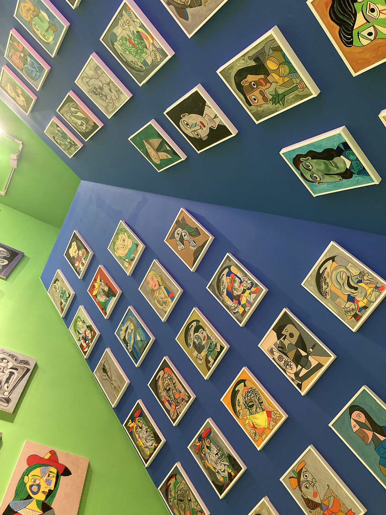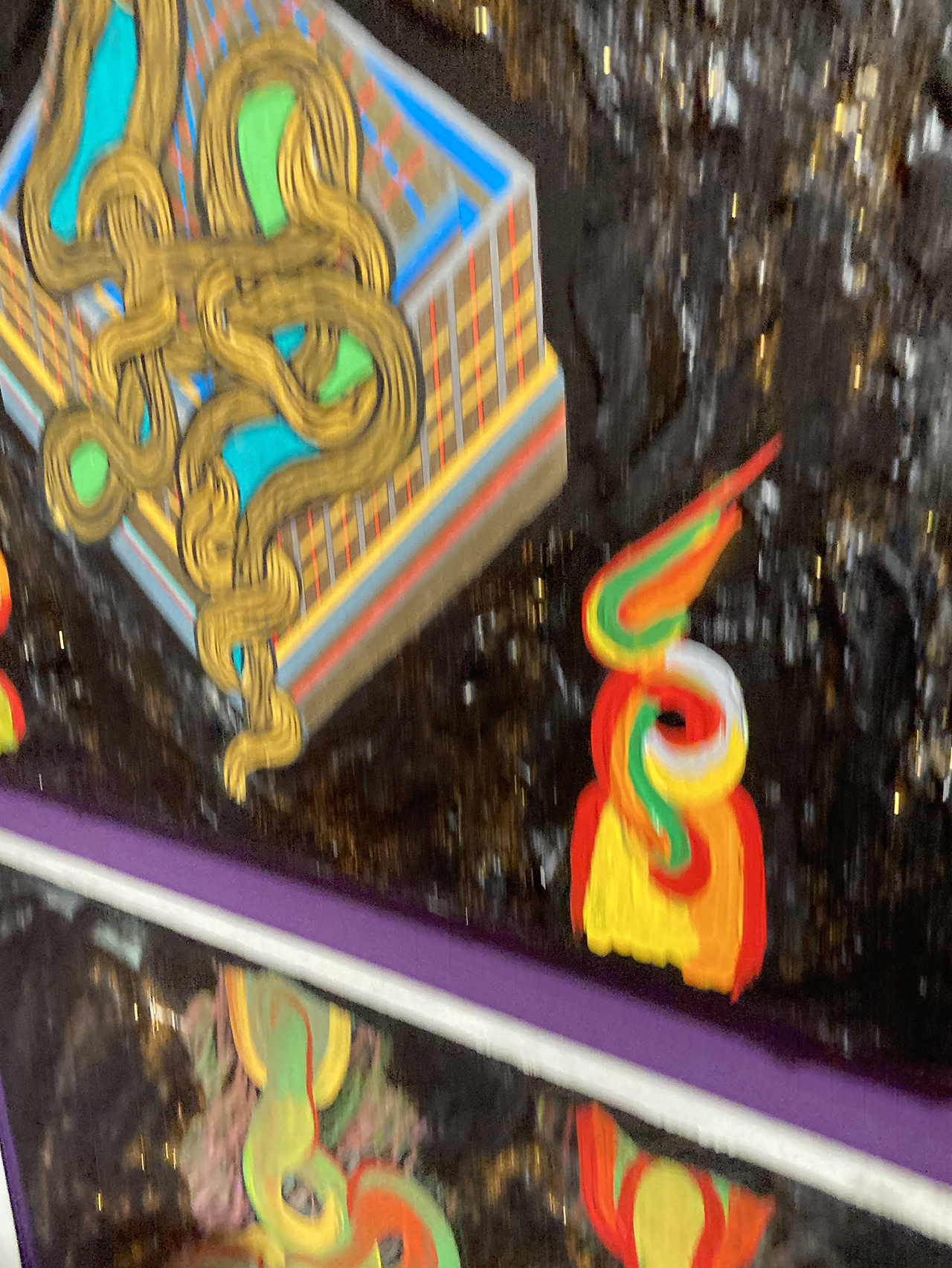 전시장에 첫 발을 들이자마자 '이런 상태가 코티졸과 도파민이 동시다발적으로 뿜어 나오는 것인가' 싶었다. 보는 순간 버거운데 콧노래를 부르고 싶었다. 세계대전 시기의 폭격, 폐질환에 의한 죽음의 위기를 겪었다는 삶의 이력이 녹아 있다는 타나아미 님의 작품에는 삶과 죽음, 희열과 죄책감이 뒤엉켜 있는 것만 같았다. 그저 보기만 하는 나로서는 쾌락이 쾌감으로 넘실넘실 넘어가려는데, 작품들에서 나온 희미한 뼈다귀 손이 발목 뒤꿈치를 잡아 반 척 정도 발걸음을 늦추게 만들고 있었다. 어쩌면 작가는 파괴와 소멸의 순간에 희락을 느꼈다는 데 생의 죄의식을 끼워 넣고 있는 것이 아닌가,라고 감히 추측해 본다. 내 그림자의 한 부분이 그 쨍한 색 조각들에 물들어 있기를, 혹은 그림자 안에 타나아미 님의 물고기 한 마리가 담겨 있기를 바라며 약속 시간에 쫓겨 후다닥 전시장을 나왔다.