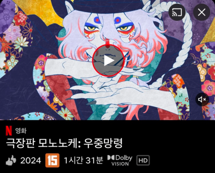 넷플릭스의 추천은 쓸모없기도, 그저 그렇기도, 유용하기도 하고, 때로는 매우 훌륭하기도 하다. "모노노케: 우중망령"은 매우 훌륭함에 속했다. 메시지도 그렇지만 순수하게 시각적인 쾌락에 잠겼다 나왔다. "모노노케"를 보면서 몇 번이나 '매우 좋음'을 눌렀다. 혹여 나의 쾌감을 넷플릭스가 간과하기라도 할까 봐.
