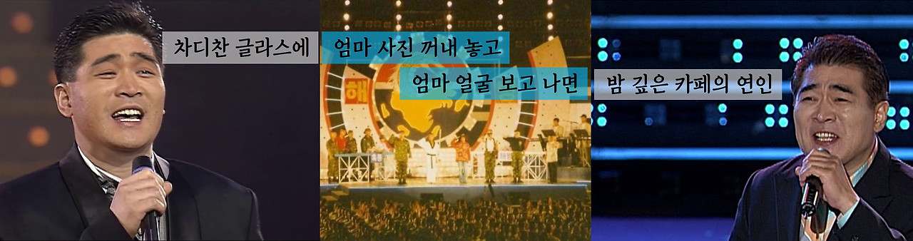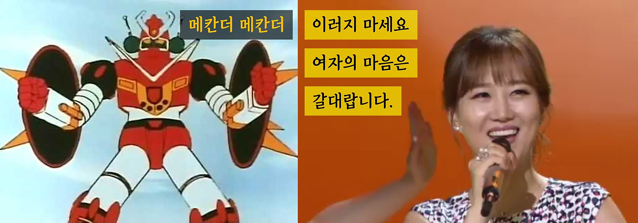 오늘은 좀 특별한 소재로 이야기해보려고 합니다. 일명 <비슷한 노래 이어 부르기>. 사실 <Mash up>이라는 멋진 용어가 있기는 하지만, 그것은 정식으로 두 개의 노래를 편곡해서 한 곡처럼 만드는 작업을 말하는 것입니다. 오늘 제가 하려는 소재는 보통 예능 프로그램에서 비슷한 분위기의 노래 두 개를 자연스럽게 이어 부르는 정도의 개그 같은 소재를 말하기 때문에 그냥 <비슷한 노래 이어 부르기>로 명명하겠습니다.