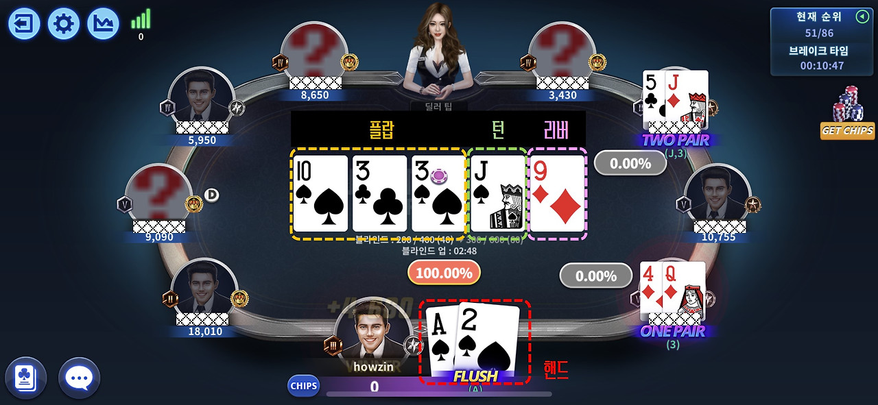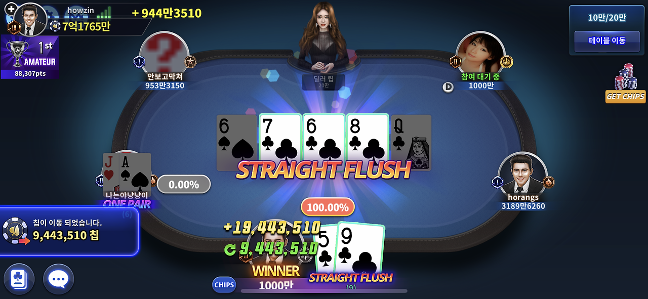 ※ 보너스 플레이 : 스트레이트플러쉬 (어제)