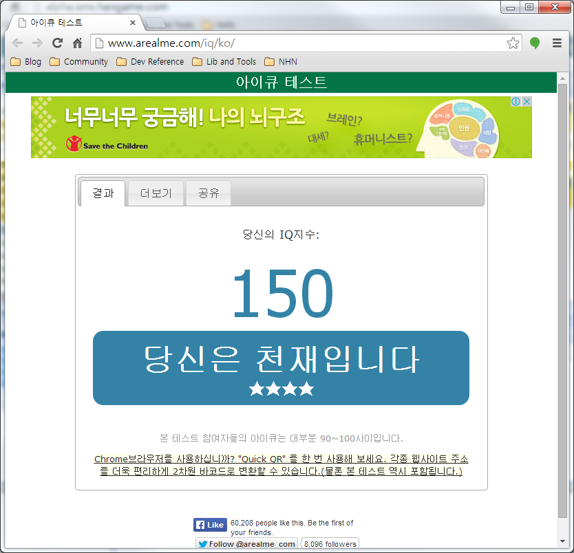 정확히 기억나지는 않지만 그 당시 IQ 검사라고 하면 대부분 숫자 몇 개가 주어지고 다음에 오는 숫자를 맞추거나 도형을 회전하여 똑같은 도형을 찾는다던지 하는 식의 단순한 계산 문제가 대부분이었다. 요즘 TV에 나오는 <문제적 남자>와 같은 고도의 수학적 사고를 요하는 문제는 아니었던 것으로 기억한다. 특히 중학교 때에는 수열이나 도형을 배우기 전에 IQ 검사를 했기 때문에 정말 아무것도 모르는 상태에서 감으로 문제를 풀곤 했었는데, 어찌 된 영문인지 그 당시의 나는 IQ 검사의 문제를 푸는 게 너무 재미있었던 기억이 남아있다. 나라는 사람은 애초부터 수학을 좋아하는 성질을 가지고 있기도 하거니와, 그런 잔머리 쓰는 계산이나 눈치 같은 것이 빨라서 다른 친구들보다 훨씬 빠르고 정확하게 문제를 풀곤 했었다.