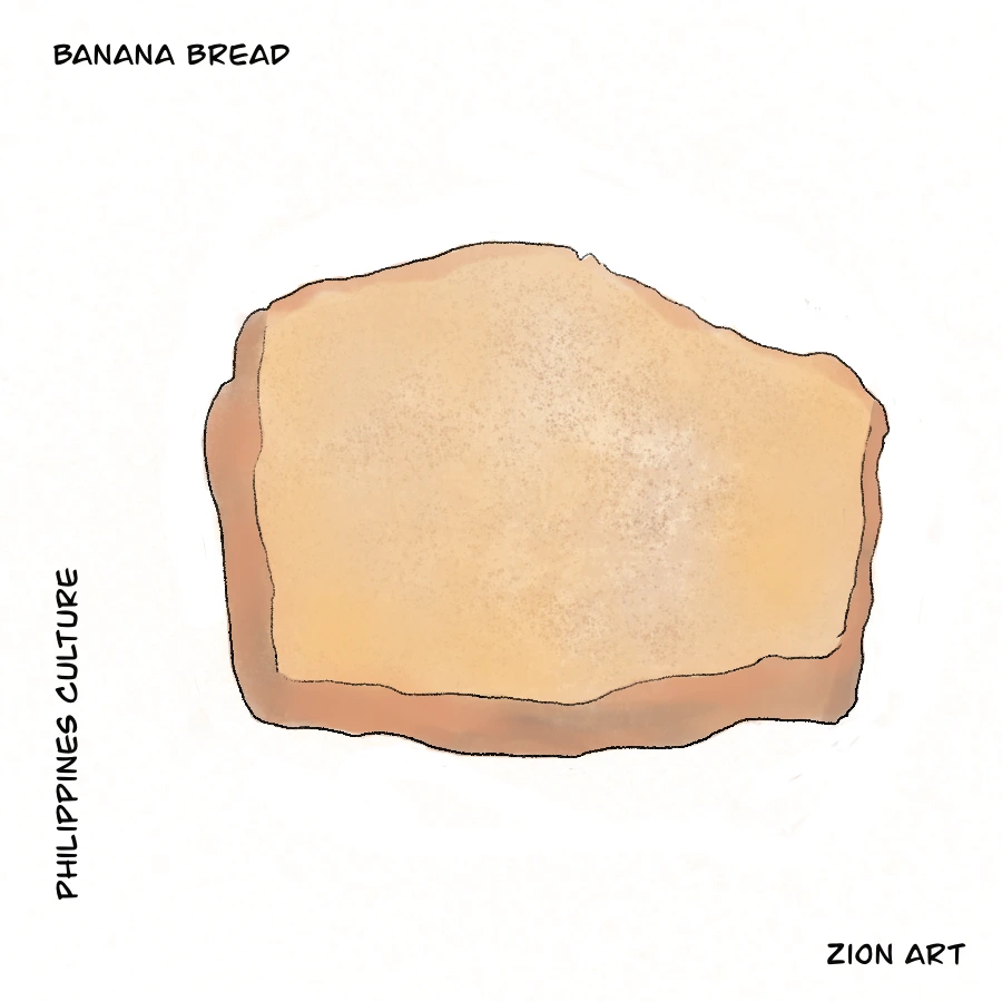 바나나가 많은 나라인 만큼 필리핀에는 바나나를 재료로 한 다양한 요리가 있다. 바나나 빵은 북아메리카의 음식 중 하나였는데, 필리핀에 미국 문화가 들어오면서 널리 퍼지게 되었다. 미국에는 바나나 빵 날(national banana bread day)도 있는데, 2월 23일이다. 밀가루 베이킹소다, 소금에 계란과 으깬 바나나를 섞은 후 오븐에 구운 것이다. 개인적으로 쉽게 바나나 빵을 만들겠다고 팬케이크 가루에 으깬 바나나와 계란을 섞어 팬케이크처럼 만들어 보았는데, 맛이 제법 괜찮았던 기억이 있다. 바나나 빵을 만드는 다양한 방법들이 있는데, 아는 분은 밀가루를 넣지 않고 바나나와 계란 만 이용하여 영양 빵을 만드셨다. 바나나 빵은 카페나, 필리핀 쇼핑몰 베이커리(동네 골목 빵집에서는 보기 어려울 수 있다) 등에서 볼 수 있다.