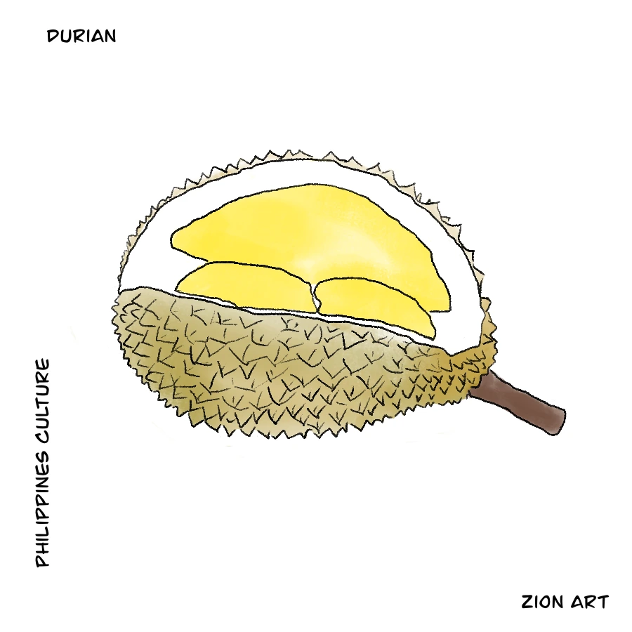 두리안은 동남아 지역에서 맛볼 수 있는 열대과일이다. 두리안은 크기, 냄새, 가시로 덮인 껍질이 독특하다. 큰 두리안은 약 30센티미터 정도 되며, 무게는 1-3킬로까지 나간다. 껍질이 단단하기 때문에 두리안을 자를 때, 두리안을 잡는다는 표현을 하기도 한다. 잘 익은 두리안은 껍질이 쉽게 쪼개진다. 두리안의 냄새에 대해서 말이 많다. 썩은 양파 냄새 등으로 표현된다. 일부 호텔은 두리안 반입을 금지하기도 한다. 필리핀 최고의 두리안은 민다나오산이다. 필리핀 제일 남쪽에 위치한 큰 섬이다. 민다나오의 다바오에서 첫 두리안을 맛보았었다. 방문했을 때가 8월 제철이어서 그런지 향도 괜찮았고, 맛도 좋았다. 19세기 영국 자연주의자 알프레드 러셀 월리스는 두리안의 맛을 아몬드 맛이 나는 풍부한 커스터드라고 표현하였는데, 그 표현이 적합하다 생각한다. 두리안을 냉동실에 넣어 꺼내 먹으면 아이스크림 맛이 나기도 한다. 손으로 두리안을 먹으면 그 냄새가 손에 배는데, 이때 껍질에 물을 붓고 손을 씻으면 냄새가 없어진다는 설이 있다.