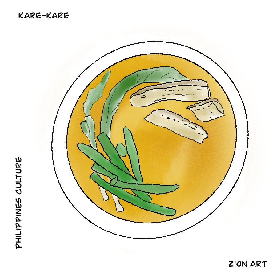 카레카레는 땅콩소스를 주로 하는 필리핀식 카레이다. 이름이 카레 카레이지만 여기에는 강황이 들어가지는 않는다. 소꼬리, 쇠고기, 돼지고기 등의 육류와 가지, 중국식 양배추, 오크라, 줄기콩 등의 야채를 넣고 구운 땅콩을 간 것 또는 땅콩버터, 양파, 마늘로 맛을 낸 것이다. 육류로는 족발 튀김(그리스피 파타), 삼겹살 부위 튀김(레촌 카왈리)을 올리기도 하고, 해물만을 넣기도 한다. 카레카레의 기원은 네 가지가 있다. 첫째는 팜팡가 지역에서 유래하였다는 것이다. 팜팡가는 필리핀의 요리 수도라고 알려진 지방으로 다양한 대표 음식들로 유명하다. 두 번째는 선박 요리라는 것이다. 땅콩을 운반해야 하는 선박에서 멕시코의 로모 엔카 와타도(lomo encacahuatado)와 유사하게 만들었다는 설이다. 카레카레는 황금 갈색이라는 뜻인 ‘cari’에서 붙여졌다고 한다. 셋째는, 스페인 점령 전 모로 사람들(무슬림)에 의해서 전해졌다는 것이고, 마지막은 남 인도인(southern indian)인 세포이(sepoys)가 필리핀에 정착하던 영국의 마닐라 점령기에 생겨났다는 것이다. 여러 유래가 전해지고 있으나 확실한 것은 카레카레는 수백 년 전에 필리핀에 정착된 음식이란 것이다. 우리가 흔히 아는 카레와 달리 땅콩의 고소함과 달콤함이 가득한 음식이 카레 카레이다. 한국에서 카레카레를 요리하고 싶다면, 순한맛 카레에 땅콩버터 1-2스푼을 추가하여 요리하면 비슷한 맛이 난다.