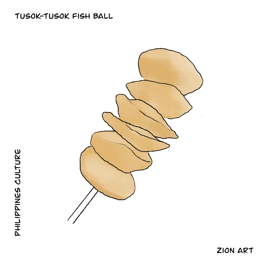 필리핀의 꼬치 어묵은 tusok-tusok fish ball이라 한다. tusok은 찌르다(poke)라는 뜻이다. tusok-tusok fish ball은 뾰족한 꼬치에 쏙쏙 꽂은 어묵이란 뜻이 된다. 필리핀의 꼬치어묵에 사용되는 어묵은 납작한 원형 모양이다. 어묵을 먼저 튀겨낸 후 꼬치에 여러 개 꽂아 판매를 한다. 먹을 때는 특제소스에 찍어 먹는다. 특제소스는 물, 밀가루, 전분, 설탕, 간장, 소금, 후추를 섞어 만든 것이다. 소스는 걸쭉한 갈색이다. 마을마다 있는 구멍가게(sari-sari store)에서도 판매하고, 길거리에서도 판매하는 간식이다. 어묵 하나에 1페소 정도니 어묵이 10개 꽂은 꼬치는 10페소(한화 250원) 정도이다.