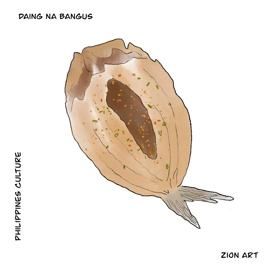 필리핀의 국민 생선은 방우스(bangus)이다. 영어로는 milk fish라고 하는데 우유처럼 프라이팬에 구어도 생선 살이 희고 부드러운 것이 특징이다. Daing na bangus라는 요리는 식초, 후추, 마늘, 소금에 방우스를 절였다가 바삭 튀긴 요리이다. Daing na bangus는 겉은 바삭하고 속은 촉촉한 생선요리로 필리핀에서는 아침식사로 등장한다. 호텔 조식에도 만날 수 있다. Bangsilog라는 메뉴를 본다면, 그것은 daing na bangus, sinangag(마늘 볶음밥), itlog (계란 프라이)를 의미한다. 즉, 방우스 생선요리에 밥 계란 프라이가 나오는 식사이다. 예를 들어 한국 분식점에서 떡김순 메뉴를 본다면 떡볶이, 김밥, 순대의 줄임말이라고 알아채듯, tapsilog (tapa 필리핀식 소불고기+sinangag+itlog), longsilog (loganisa 필리핀식 소시지+sinangag+itlog) 이렇게 나오는 음식의 단어를 축약해서 말한다. 대부분 메인 반찬을 의미하는 앞 단어가 바뀌고, 실록(마늘 볶음밥과 계란 프라이)을 뒤에 붙인다. 실록이 붙은 음식은 동네 골목 식당에서 종종 볼 수 있고, 가격도 저렴한 편이다. Daing na bangus는 식초에 후추, 고추를 넣은 소스에 찍어먹는다. 가정에서도 이 요리를 해 먹을 수 있도록 마트에 가면 냉동식품 코너에 절인 방우스를 팔기도 한다. 방우스를 한쪽만 잘라 펼친 모습 이색적이다.