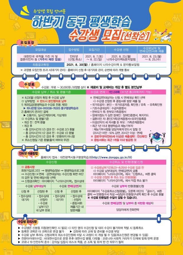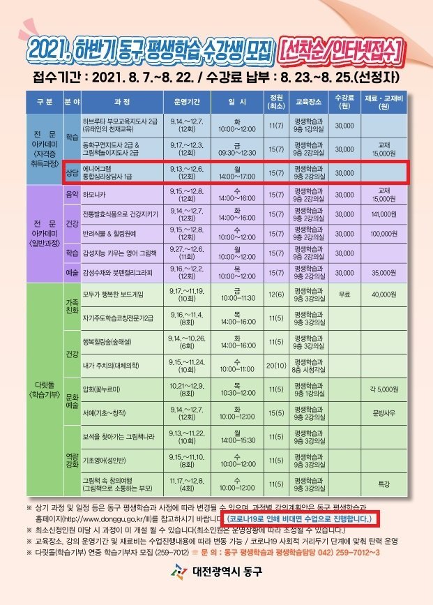 아래 대전 동구 평생학습과에서 수강신청을 할 수 있다.