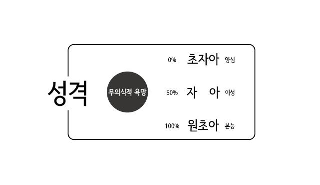 이번에는 무의식의 욕망에 지배당하는 인간 즉 '무의식적 인간'에 대해 알리고자 한다. 인간은 크게 나눠 '무의식적 인간'과 '의식적 인간'으로 구분할 수 있다. 무의식적 인간이란 스스로를 통제할 수 없는 상태로서 일종의 '기계인간'이라 할 수 있고 의식적 인간은 무의식적 상태에서 벗어나 자신을 통제할 수 있는 상태의 '주체적 인간'이라고 할 수 있다. 앞서 살펴보았듯이 프로이트는 인간을 무의식적 욕망에 지배당하는 존재로서 설명했고 매슬로우는 그 욕망의 수준을 단계적으로 설명한 것이다. 그리고 무의식적 욕망에 따라 지배당하는 인간을 우리는 앞으로 '성격적 인간'이라고 부를 것이다. 성격이란 한마디로 무의식적 욕망과 그 욕망을 실현하기 위해 형성된 자아 시스템(ego system)이다. 프로이트는 이러한 자아 시스템 곧 성격적 인간의 구조에 대해 다음과 같이 세 가지로 구분 지어 설명하였다.