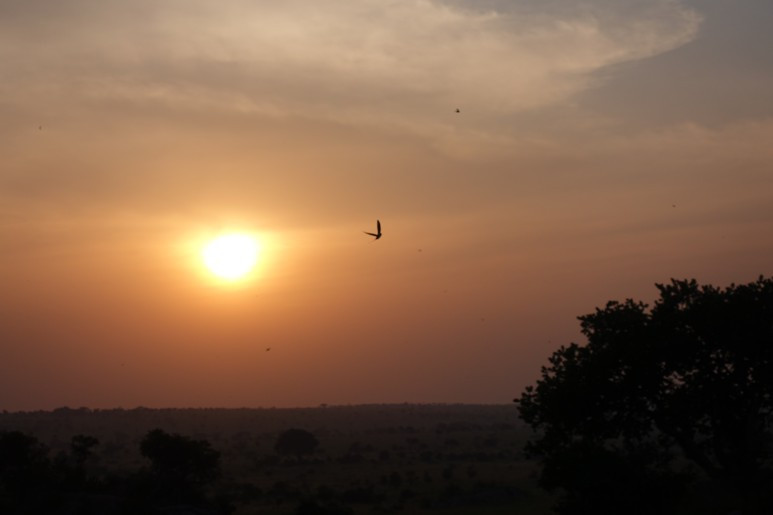 그 때는 해질녘이라 영화 아웃 오브 아프리카에서 봤던 붉은 하늘이 들판에 드리울 때다. 아프리카의 일몰은 어느 곳에서도 본 적 없는 일몰이다. 그 붉은 색은 여느 휴양지에서 보던 불타는 듯이 선명하게 붉은 석양도 아니고 예전에 아리조나에서 보았던 온 하늘이 알록달록 붉던 그 압도적인 일몰 같지도 않다. 태양은 지평선으로 멀어지고 붉은 빛은 인상파 그림 같이 흐릿하게 붉으며 그 면적은 수평선 대부분을 덮는다. 특히 다른 점은 흐릿하게 붉은 색이라 희한하게 몽환적이고 감상에 젖어들게 한다는 거다. 아웃 오브 아프리카에서처럼 모차르트 클라리넷 협주곡 2악장이 곧 울려퍼지고 로버트 레드포드가 저 멀리서 사냥을 다녀오는 모습이 그대로 펼쳐지는 것이다.