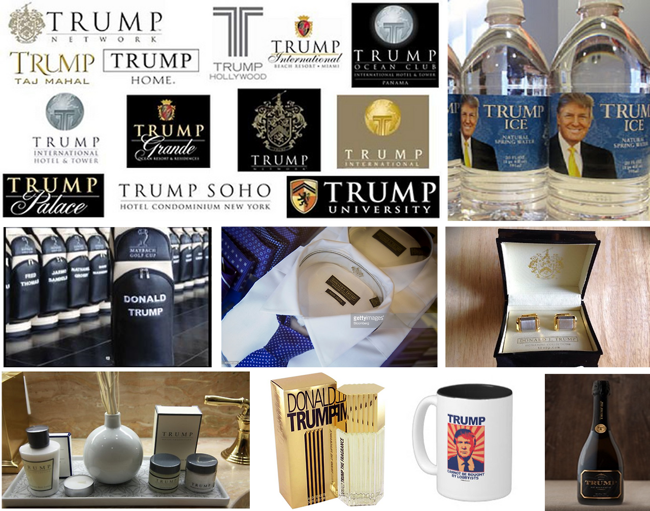 이를 통해 트럼프가 구축하려고 하는 것은 강력한 '브랜드'다. 트럼프라는 이름으로 호텔과 리조트, 골프장 등이 전 세계에서 건설되고 있으며, 그는 부동산 실물 자산의 가치를 드높이는 전략으로 브랜드를 사용한다. 온통 금딱지로 마인드셋 된 고급진 트럼프라는 이미지는 실생활 곳곳에서 T.R.U.M.P라는 스펠링을 까먹지 않도록 데일리 라이프에서 끊임없이 반복하며 되뇌어 강력한 브랜드 인지도를 구축하게 해준다. 남의 나라 얘기인 것 같은가? 여의도에 있는 트럼프월드는 간판 사용료로 60억을 지불했다. 지금 얘기하고 있는 TRUMP는 가족 이름(성) Last Name이기 때문에 도널드 트럼프 이후에는 그의 자녀들 도널드 트럼프 주니어, 이방카 트럼프, 에릭 트럼프가 돌아가면서 트럼프 왕국을 이어나갈 것이다.