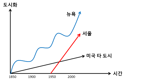 머리도 좋은데 잘생기고 성실하고 게다가 부잣집 아들인 뉴욕은 슬프지만 애시당초 우리의 비교대상이 아니다. 다만 동시대에 존재하는 미래의? 도시상이다. 그리고 앞으로 10년 후에도 20년 후에도 뉴욕은 지금의 도시 경쟁력 또는 헤게모니를 놓지 않을 것 같고, 앞으로 양극화의 시대에 뉴욕을 능가하는 도시가 출현하지 않는 한 세계의 인력과 자금은 계속해서 더 뉴욕으로 몰릴거 같으니 뉴욕과 다른 도시의 격차는 커지면 커지지 작아지지는 않을 것 같다. 즉, 뉴욕은 아주 오랜기간에 걸쳐 고도화된 도시를 이룩했고, 앞으로도 그 질적 성장은 지속될 것이다. 이에 반해 한국은 매우 짧은 시간만에 양적, 질적 성장을 했는데, 앞으로 그 양적 성장을 지탱해온 성장 모멘텀이 지속될수 있느냐 없느냐, 양적 팽창에 한계가 왔다면 다음 단계로의 질적 성장으로 이어나갈수 있느냐에 따라 많은 변화를 맞이할 것이다.