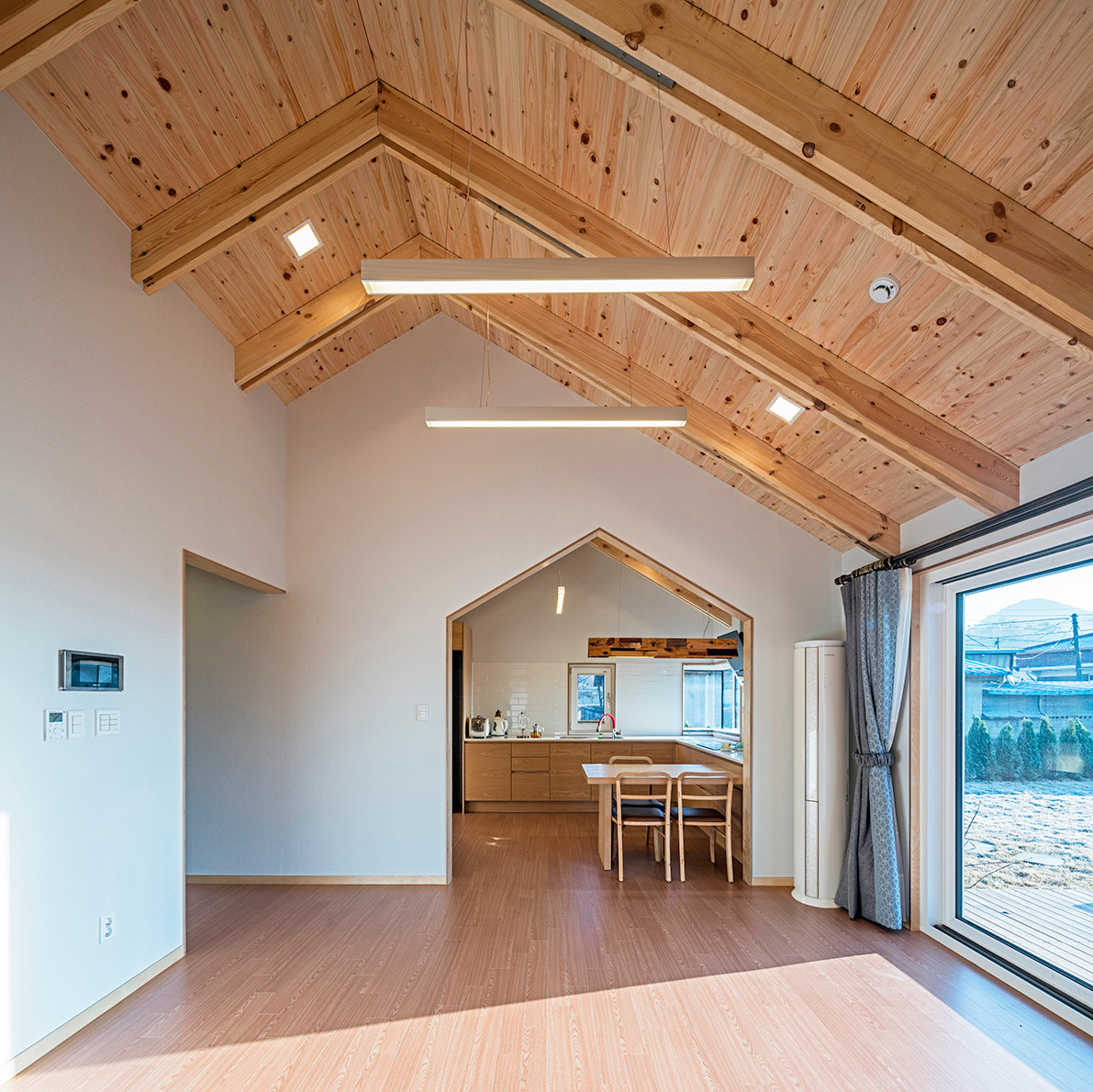 이 집은 특이한 집은 아니다. 기존 집의 배치를 따랐고, 단층의 작은 살림집이기에 많은 공간을 가지고 있지도 않으며, 독특한 재료를 사용하지도 않았다. 너무나도 단촐하고 평범하다. 늘 그러하듯이 기능과 활용적인 면에 충실하도록 계획을 꾸려갔다. 가장 보편적인 구성이다. 하지만 작은 공간으로 분절되어 가뜩이나 작은 집의 공간이 더 작아 보일 것을 감안해 두 공간을 연속되게 하여 공간감이 부족하지 않게 하였다.