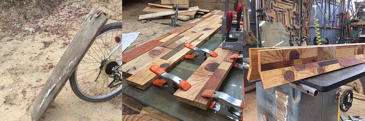 한 때 곳간에 나락을 채우고 한 장 한 장 아래에서부터 닫아왔던 판문들이 고재로 남아 있었다. 철거 부산물 중 온전한 상태로는 유일무이했다. 나무를 다루는 지인에게 우선 보여주고, 이것으로 무엇을 어떻게 할 것인지의 심사 끝에 조명을 제작 했다.
