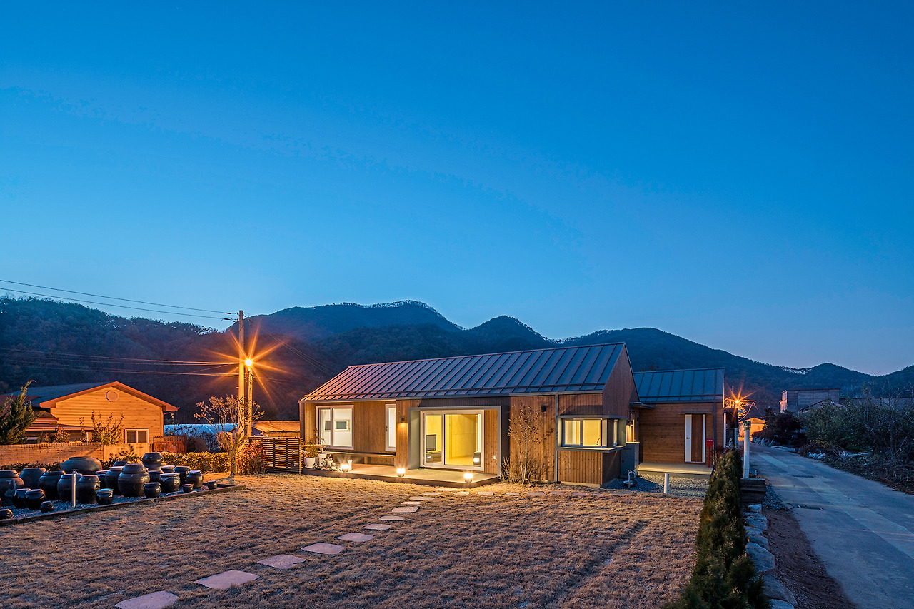 이 집이 자리한 곳은 작은 마을이다. 몇 가구 남지 않는 길의 끝에 있다 보니 지어 지는 동안 마을 사람들이 한마디씩 내던졌다. 그 보태어진 말들만 주워 담아도 남의 집 수 채는 지었을 것이다. 일일이 대응을 꺼리던 건축주도 이제는 이전 집의 그 곳간 판문을 기억하는 분들이니 조명에 대해서 그리고 이 집에 대해서 세세하게 설명을 늘어놓으신다. 참 밝은 집이고, 앉아있자니 일어서 나서기 싫어진다.