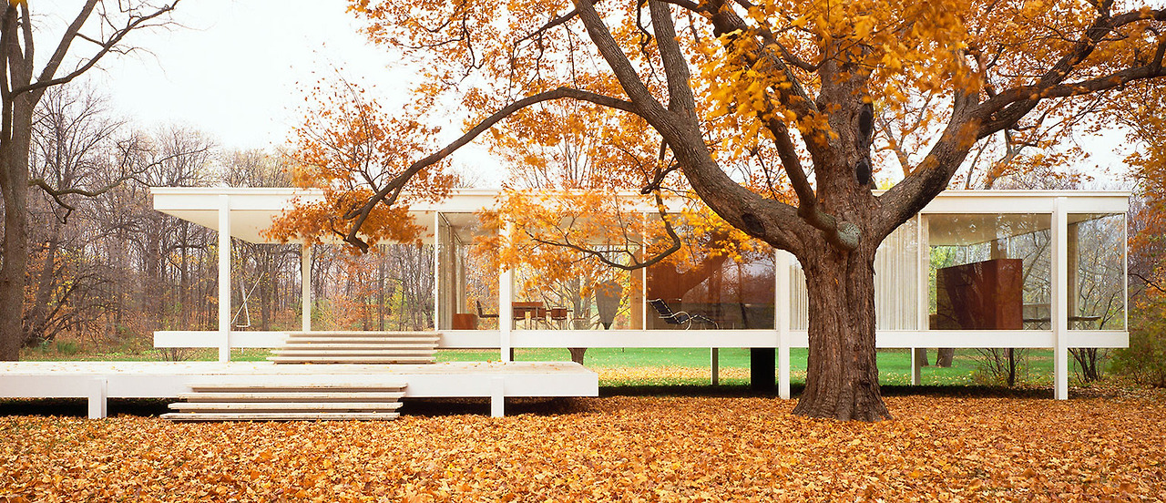 1951년 65세 때 지어진 판스워스 하우스(Farnsworth House)는 에디스 판스워스(Edith Farnsworth) 박사의 주말 주택이다. 철골 프레임과 판유리로 투명하게 지어진 이 하얀색의 단순하고 완고한 주택은 시카고 외곽의 폭스 강 옆에 위치하고 있으며 범람을 고려하여 6피트를 들어올려다. 모더니즘의 걸작으로 집은 자연과 완벽한 조화를 이뤘고 건축적 가치로서는 기념비 적인 작품이었지만 정작 소송까지 겪어야 했던 작품이다. 투명한 판유리로 인해 사생활은 사라졌으며, 실용적이지 못하고, 여름이면 실내는 형언할 수 없이 더웠고, 겨울은 동토를 방불케 했다. 자연은 바깥 뿐아니라 안에도 그대로 존재했다.