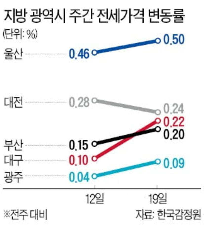 집주인의 입장을 불리하게 하는 임대차 3법의 실행은 심각한 전세난의 시발점이 되었다. 3기신도시 청약 등 대규모 주택 공급으로 인해 이에 앞서 전세에 대한 수요가 어느 때보다 큰 상황이다. 그런 상황에 주택 보유자들에 대한 실거주 압박이 커지면서 어쩔 수 없이 기존에 전세로 거주하던 임차인들이 계약을 연장하지 못하고 쫓겨났다는 소식도 어렵지 않게 찾아볼 수 있다. 수요가 보다 증가한 와중에 매물은 씨가 말라 전세 공급이 원활하게 이루어지지 않고 있는 것이 현실이다. 이러한 문제점들은 서울에만 초점이 맞춰진 것이 아니다. 실제로 현재 울산, 부산, 강원 등 지방의 전세값이 7년 6개월만에 최대치로 상승하는 모습이 연출되고 있다.