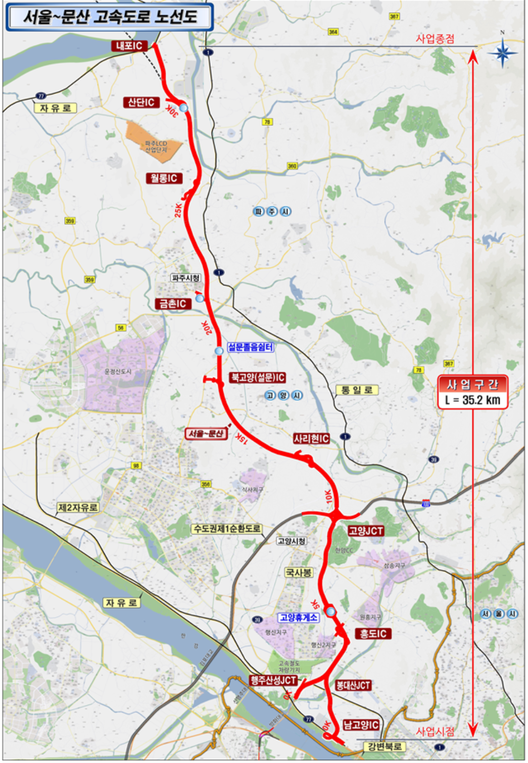 서문 고속도로는 서부내륙 주요거점을 연결하고 통일시대를 대비하기 위해 신설된 노선이다. 2015년 11월에 착공하여 5년만에 개통을 한 것인데, 투자비 약 21,190억원이 투입되었다. 익산~문산축 최북측 구간으로 인천공항.강변북로.수도권제1순환선을 연결하고 경기 서북부지역의 세로축 고속도로망으로 국도1호선 우회 역할을 담당할 것이다. 서울~문산 고속도로의 정확한 사업구간은 경기도 고양시 강매동부터 경기도 파주시 문산읍 내포리까지 총 연장은 35.2km이고 왕복 4~6차선 도로로 이루어져 있다.