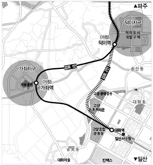 다음으로는 고양시 내에서 가좌지구와 덕이지구의 갈등인데, 3호선이 고양시를 거쳐 지나간다고 해도 사실상 가좌지구와 덕이지구 모두를 거쳐갈 수는 없다. 사업성이 나오지 않기 때문이다. 해서 3호선이 고양시를 거쳐갈 때 어느 곳을 거쳐갈 것인가에 대해 가좌지구와 덕이지구가 갈등을 빚고 있는 것이다. 현재 운정 1,2지구를 지나게 될 것이라고 예상되는 노선에 따르면 덕이지구를 지나는 노선이 가장 유력한데 대중교통 여건 개선을 위해 가좌지구 주민들이 의견을 피력하고 있는 상황이다.