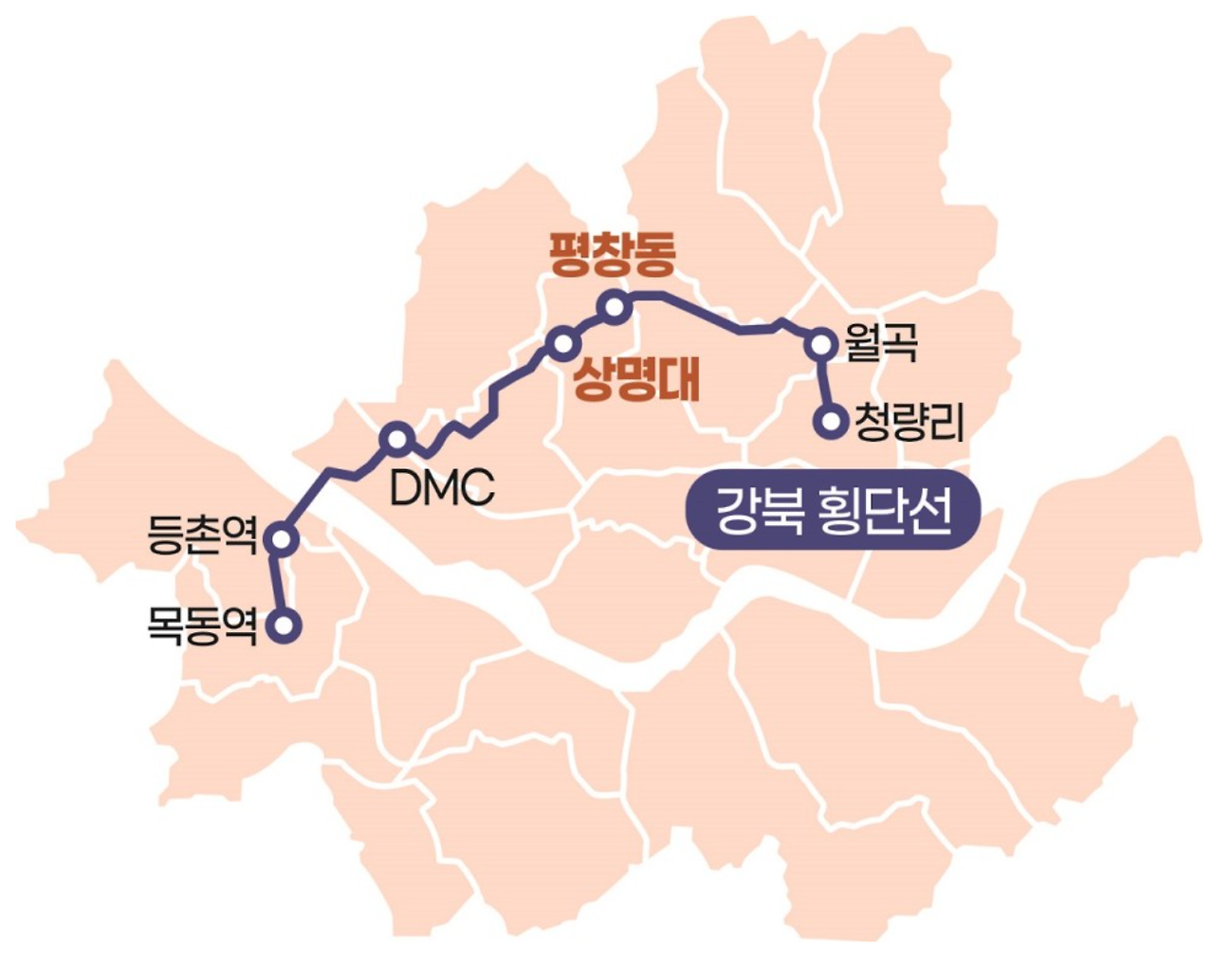 그렇다면 강북횡단선의 신설로 이득을 볼 수 있는 주요 지역은 어디일까?