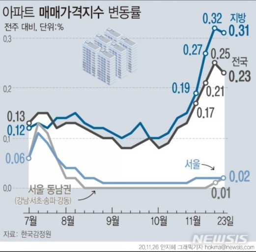 상황이 이렇다 보니 사람들이 다시 서울로 돌아가고 있다. 한 부동산 관계자는 "지방 아파트 전용면적 59㎡ 가격이 10억원이 넘을 정도니 다시 서울 부동산으로 유동성이 몰릴 수밖에 없습니다."라고 말했는데, 정부가 11·19 전세대책과 함께 내놓은 규제지역 추가로 '역풍선효과'를 우려한 전문가들의 전망이 현실화된 것이다. 전문가들은 결국 규제를 통해 전국의 주택 가격을 상승시키고 이제 다시 서울로 돌아왔다며 이런 현상이 당분간 지속될 것으로 전망했다.