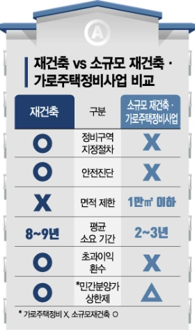 소규모 재건축 사업은 사업구역 1만㎡미만, 기존주택의 세대수가 200세대 미만인 노후 주택단지의 주거환경을 개선하는 ‘미니 재건축’ 사업이다. 동네에서 흔히 볼 수 있는 연립이나 빌라 단지 등이 그 대상이다.