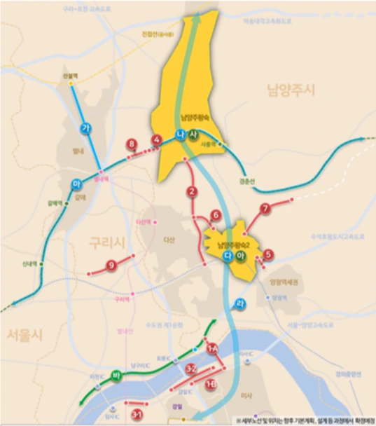정부는 남양주 왕숙신도시에 지하철 9호선을 연장하겠다는 계획을 밝혔다. 이는 서울 강동과 하남을 거쳐 왕숙 1ㆍ2지구를 모두 지나는 노선이다. 이처럼 국토교통부 대도시권광역교통위원회(대광위)는 2020년 12월 이 같은 광역교통개선대책을 발표했는데, 서울 도심까지 30분대 출퇴근이 가능하도록 대중교통 투자를 확충하는 게 계획의 골자이다.