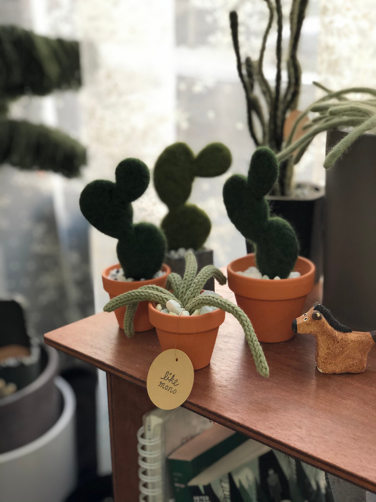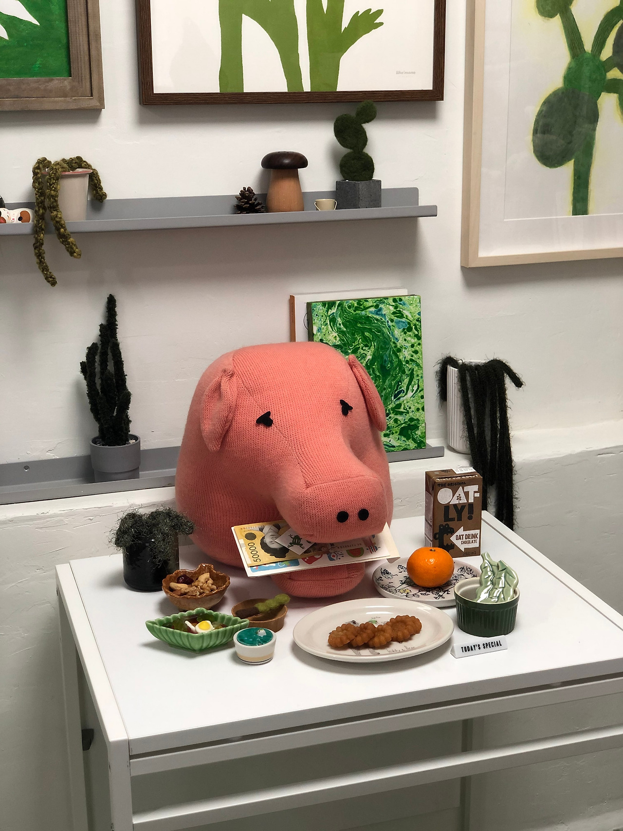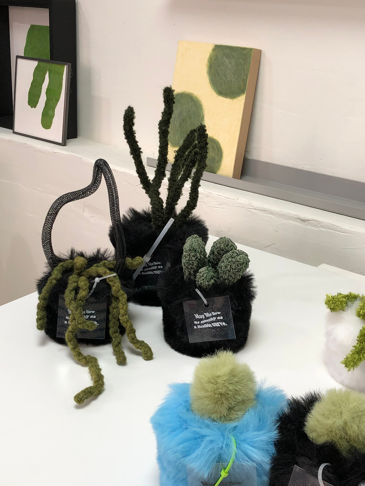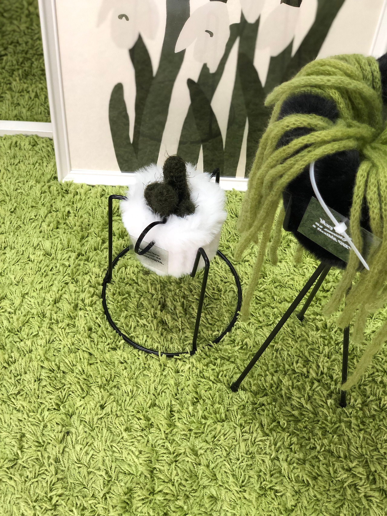 작가가 만들 식물과 팟, 도자기, 니트 아이템을 소개 및 판매. 그림과 액자도 판매가 되었고 공지를 짧게 했음에도 많이들 찾아와주셨다. 일부 공간에 그동안 모아둔 녹색 아이템 전시도 함께 진행.