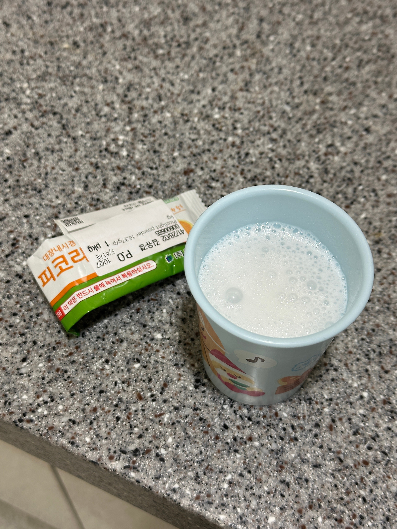 "이 약을 물에 타서 한숨 식힌 뒤 마시세요. 물에 넣어 바로 마시면 화상을 입을 수 있으니 꼭 거품이 다 올라온 후 한참 뒤에 마시기 바랍니다." 뭔가 화상을 입는다고 하니 무서운 생각이 들면서 또 관장약이라고 하니 바로 신호가 올 것 같아 두근두근 하며 천천히 다 마셨다. 맛은 나쁘지 않았고 바로 화장실에 가지는 않았다. (지금 떠올려봐도 이게 실제로 도움... 이 되었는지 의문)