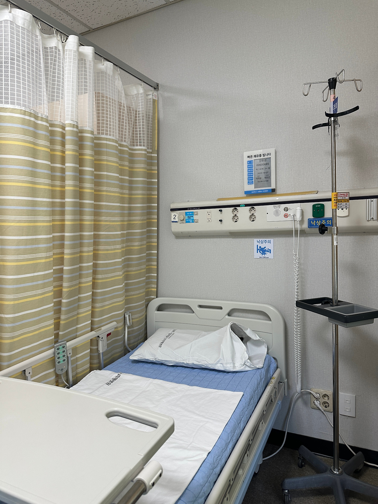 수술을 위해, 그리도 수술 후 식사를 못 하기에 수액을 연결해야 한다고 하셨다. 혈액형 검사를 위해 피를 조금 뺀다고도 하셨고 다행히 한 번에 바늘을 꽂아주셨다. (바늘이 두꺼워서였을까. 소리를 내진 못했지만 입이 떡 벌어지게 아팠다. 2일 뒤 뺄 때도 딱 그만큼 아팠다.)
