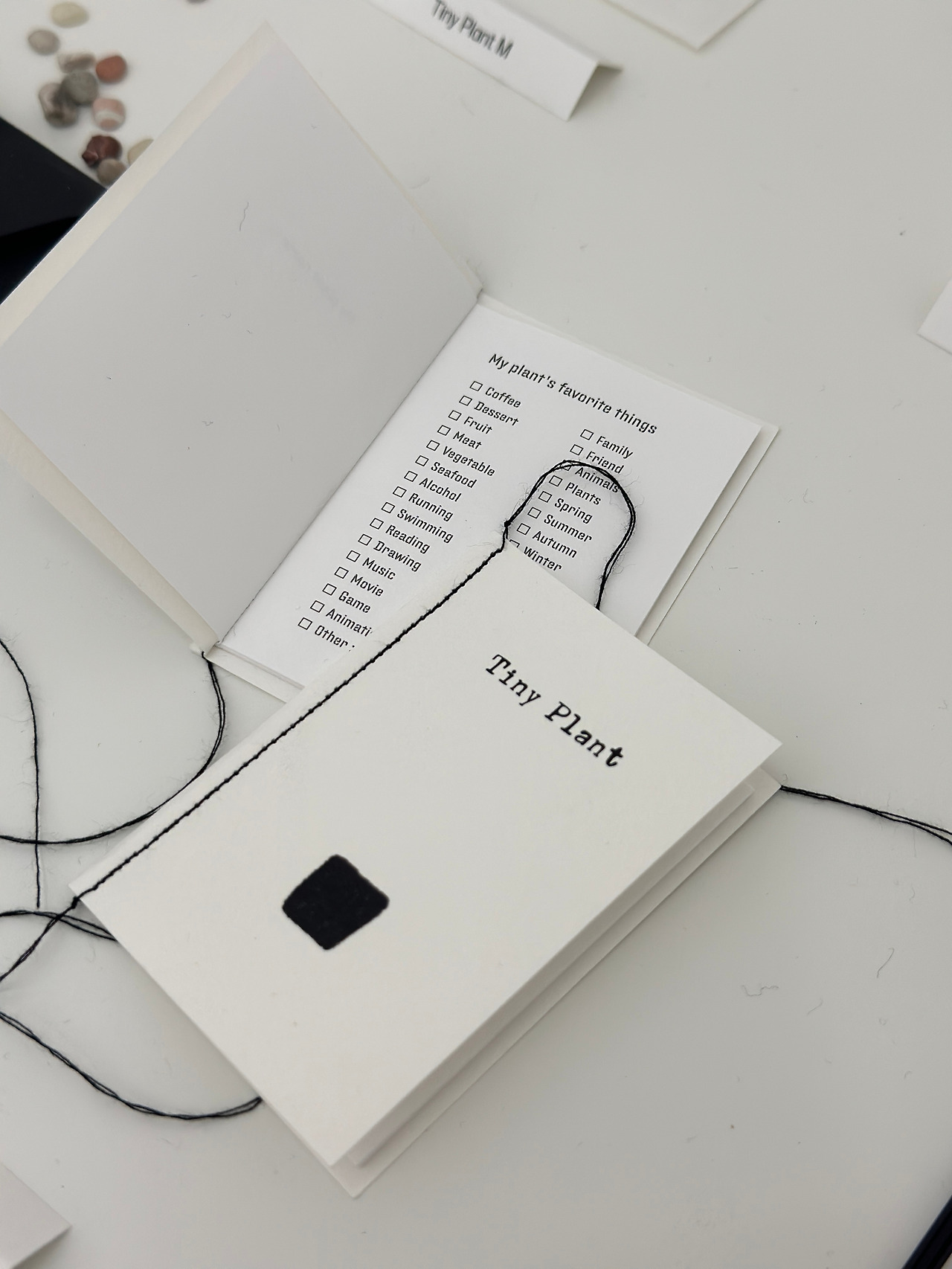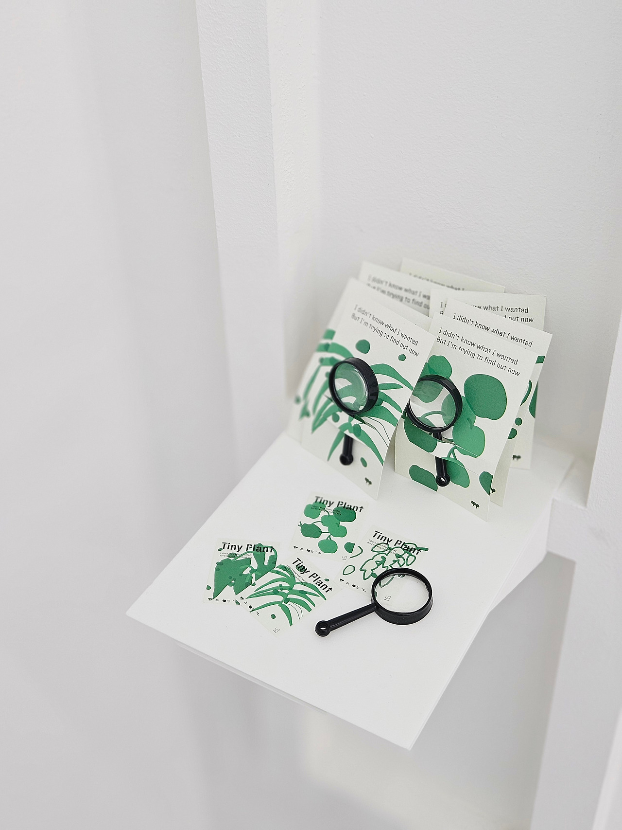 작은 식물을 직접 키울 수 있는 키트. 구성품으로는 타이니 플랜트의 씨앗, 유묘기 식물, 성숙기 식물, 화분(캄웨이브와 토라세라믹 중 선택) 미니 삽, 돌, 타이니 북. 식물은 씨앗을 심은 이후로 집사의 선택에 따라 성장할 수 있다. 벽에 전시된 씨앗을 보고 어떤 식물로 자라게 될지 유추하여 선택할 수 있었으며 대부분 씨앗과 다 자란 식물을 잘 매칭하여 분양해 가셨다. 식물을 키우는 것만이 아닌 기록하여 남기는 것까지도 제안하였다. 1년 뒤 자란 식물과 남겨진 기록물들로 다음 전시로 이어졌으면 하는 바람이다.
