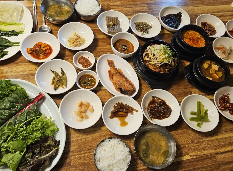 차로 돌아오니, 어느새 시간이 12시 즈음되어 바로 점심으로 쌈밥을 먹으러 갔다.