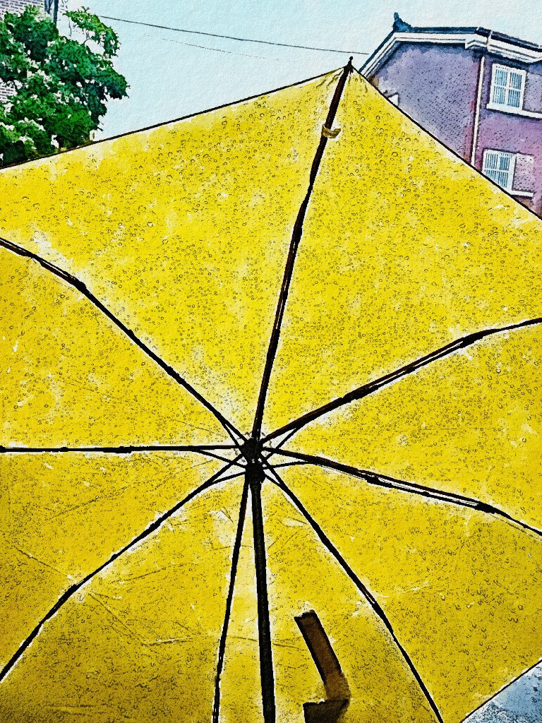 비 오는 날, 알록달록 주인을 지키는 충성스러운 지붕이 된 너는 투명해도 돼.