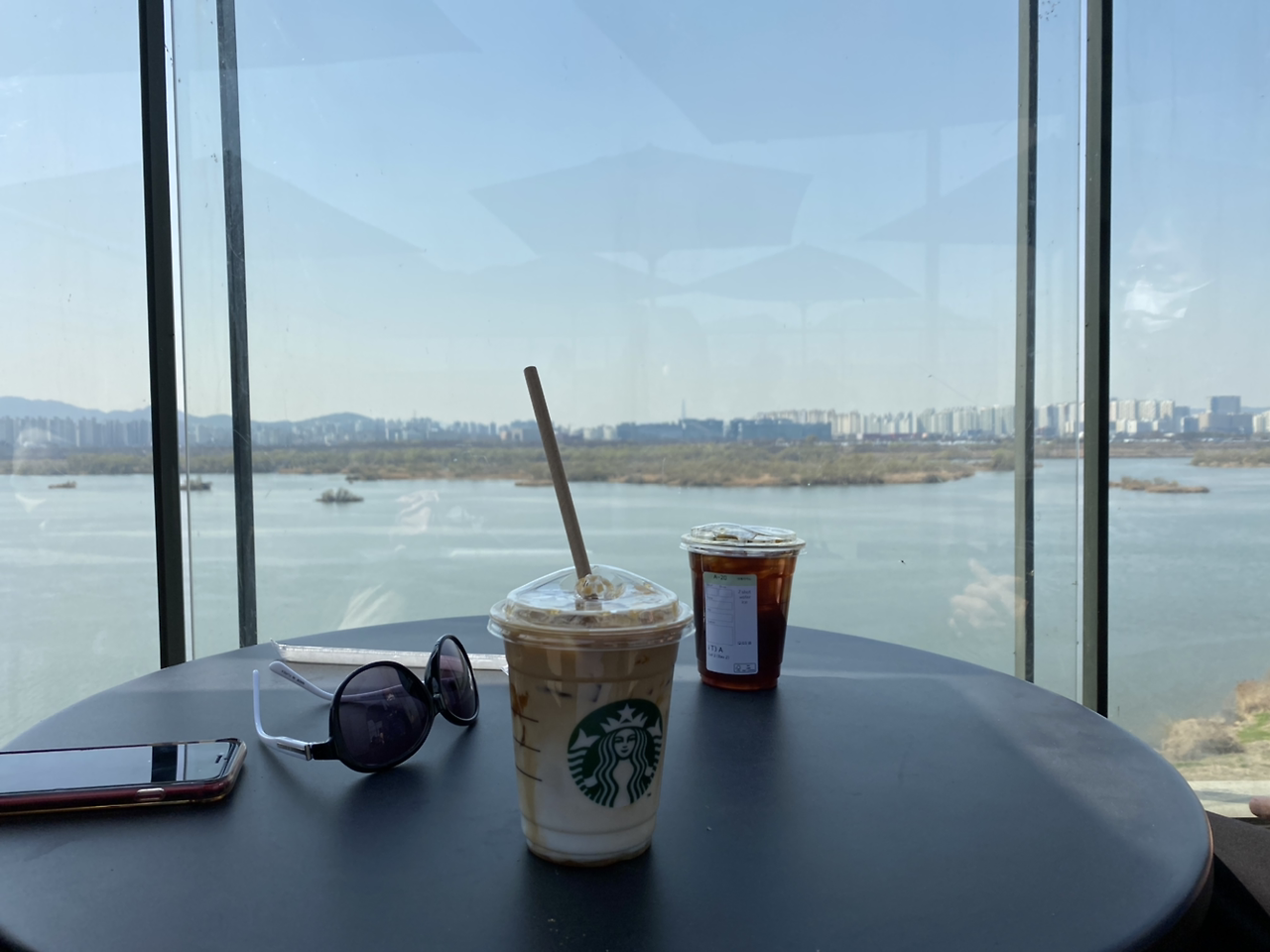 늘 사람이 많아 자리잡기가 쉽진 않다. 그리고 야외석은 벌레가 너어어무 많다. 하지만 강을 보고 먹는 커피와 그 풍경은 한번 쯤 시도해볼 가치가 있다.