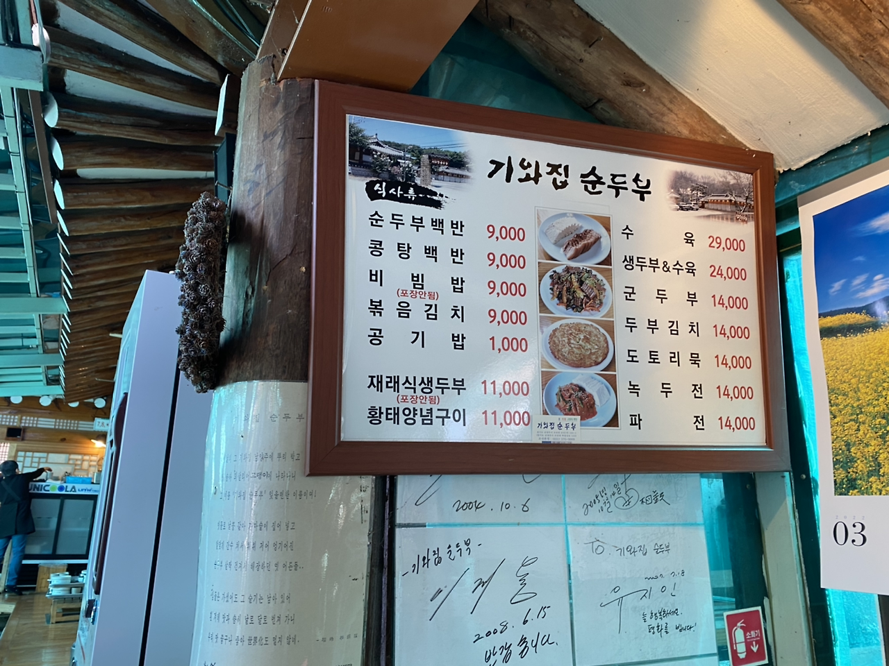 기와집 순두부는 정말 오래된 맛집이다. 철을 잘 맞추면 제비가 드나드는 모습을 볼 수도 있다. 기와 지붕 사이사이에 지어진 제비집과 그곳을 쉴새없이 오가는 제비를 보는 것도 묘미다. 줄이 길어도 회전이 빠르니 조금 기다려보는 것을 추천한다.