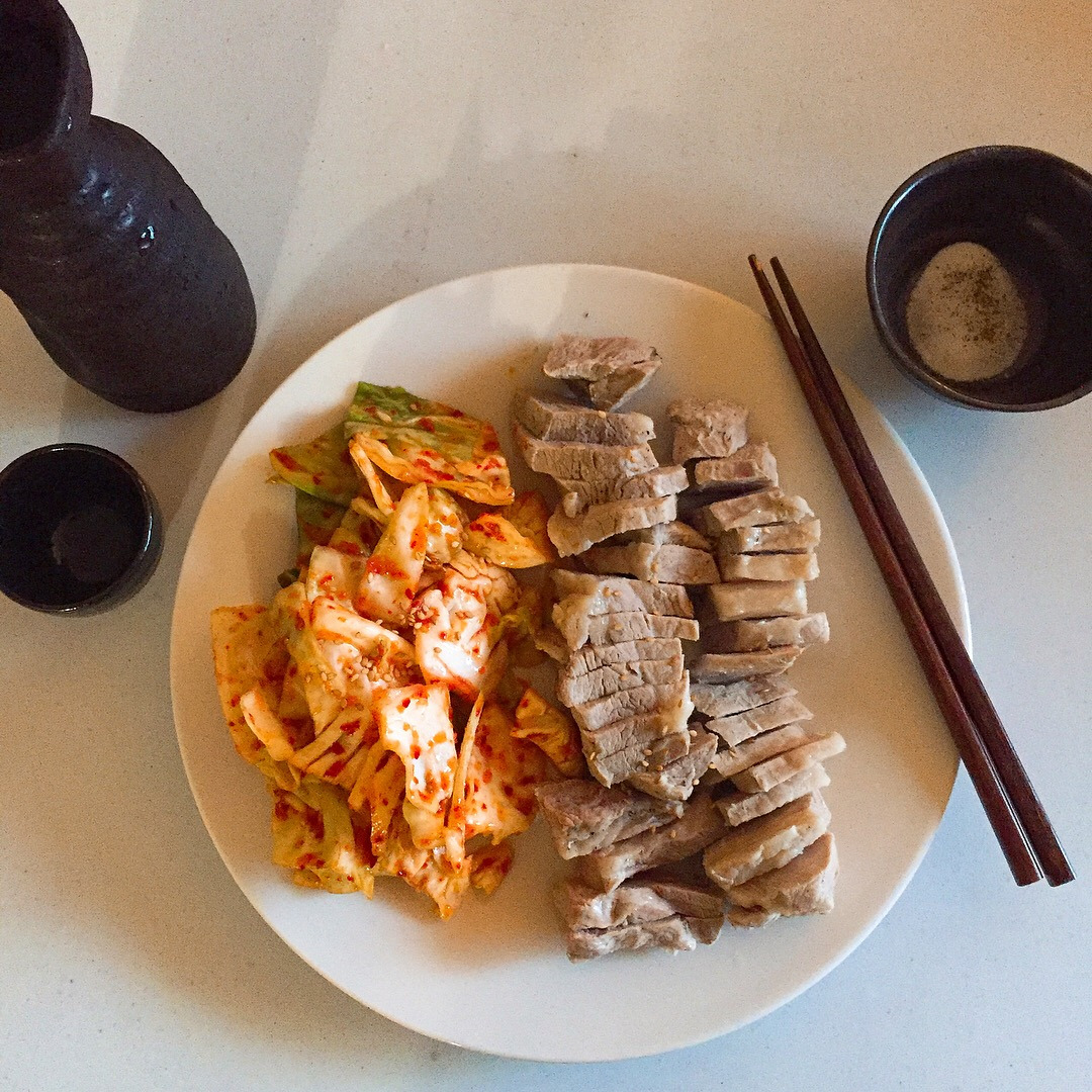 갓 담은 양배추 김치를 만든 날에는 돼지고기를 사다가 보쌈을 만들어 먹는다. 어릴 적, 엄마와 할머니가 메인 셰프가 되고, 아빠, 나, 동생들 모두가 보조 셰프가 되어 김장을 하면, 그날은 어김없이 굴과 돼지고기를 사다가 보쌈을 먹었다. 고기를 잘 안 드시는 할아버지도 그날은 갓 담은 김치와 돼지고기 한 점에 막걸리를 기분 좋게 드셨더랬다.