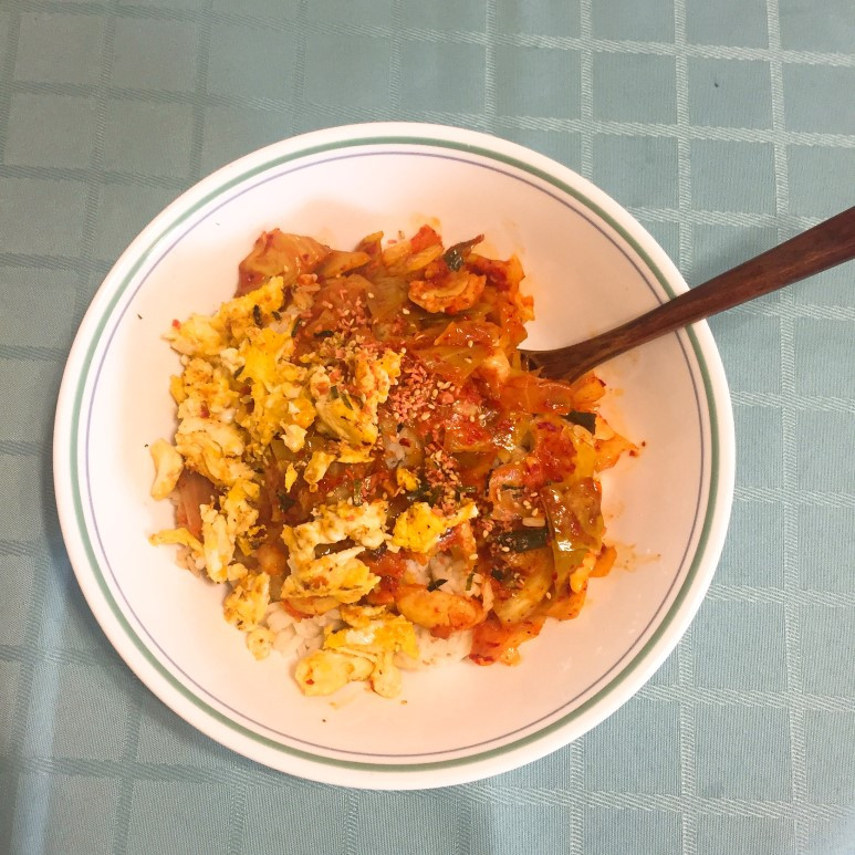 양배추김치가 새콤하다 못해 시큼해지면, 김치부침개를 만든다. 양배추김치는 많이 익더라도 그 아삭한 식감이 유지돼서 좋다. 양배추는 일본음식인 오꼬노미야끼에도 많이 사용되는 식재료라서 김치부침개로 만들어 먹어도 어색함이 없다. 아삭한 양배추김치의 식감은 김치덮밥에서 꼬들꼬들한 매력 발산.