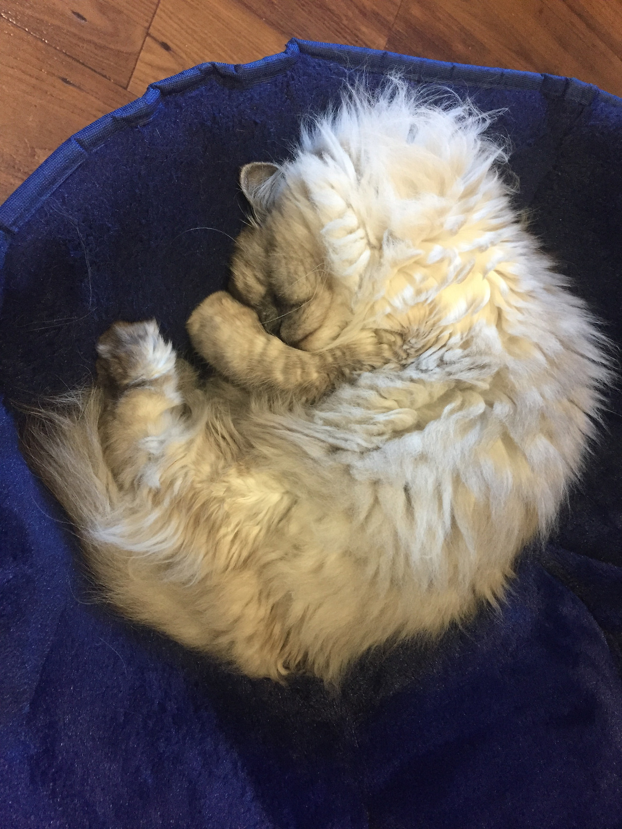 살은 아직 빠지진 않았지만, 아래로 많이 처지기 시작했다. 아깽이 시절이나 혈기왕성한 시절에도 근육 없이 살이 말랑말랑한 체질이긴 했지만, 그것과는 다른 느낌이다. 등뼈가 도드라지는 이유도 살이 아래로 처지기 시작했기 때문이다.