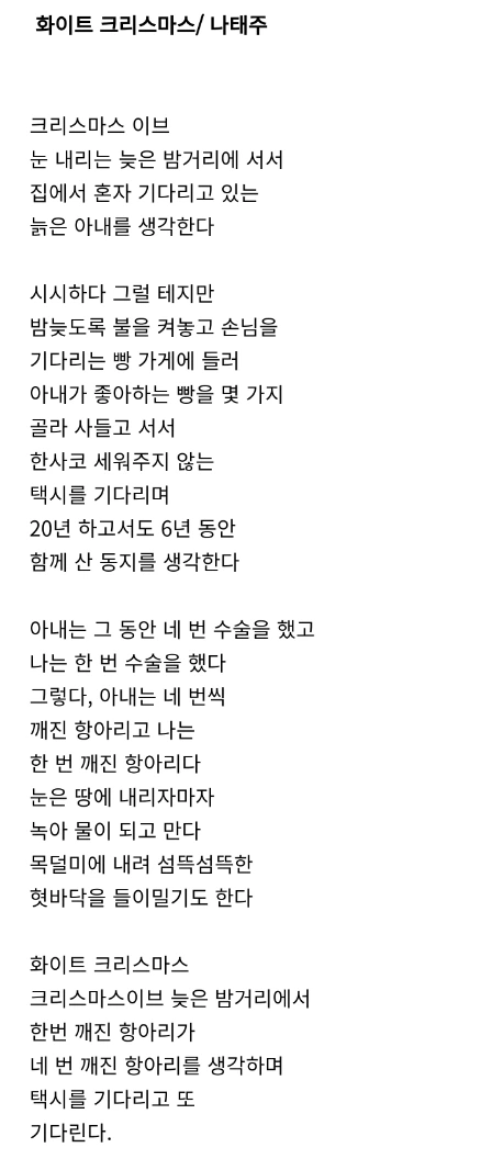 나태주 시인의 화이트크리스마스와 모작시 흑역사 지우개